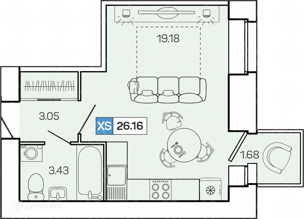 Общая площадь 26.16 м2