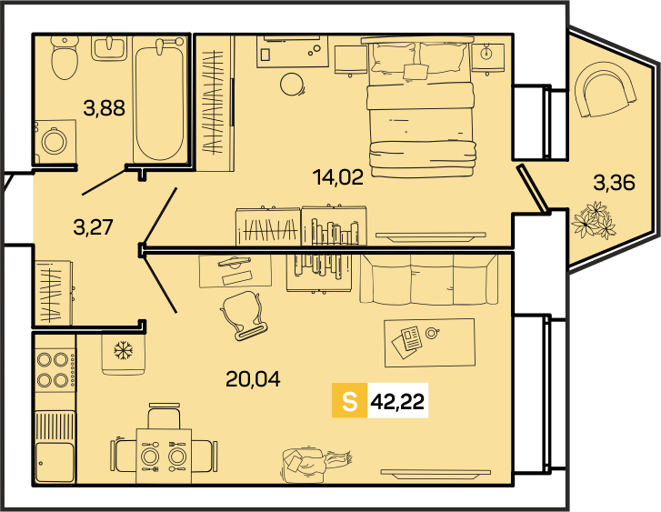 Общая площадь 42.22 м2