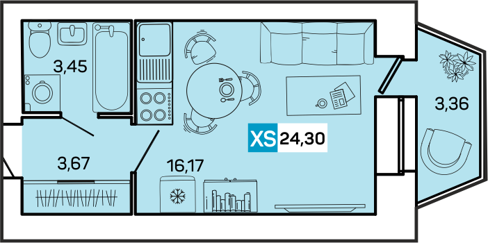 Общая площадь 24.3 м2