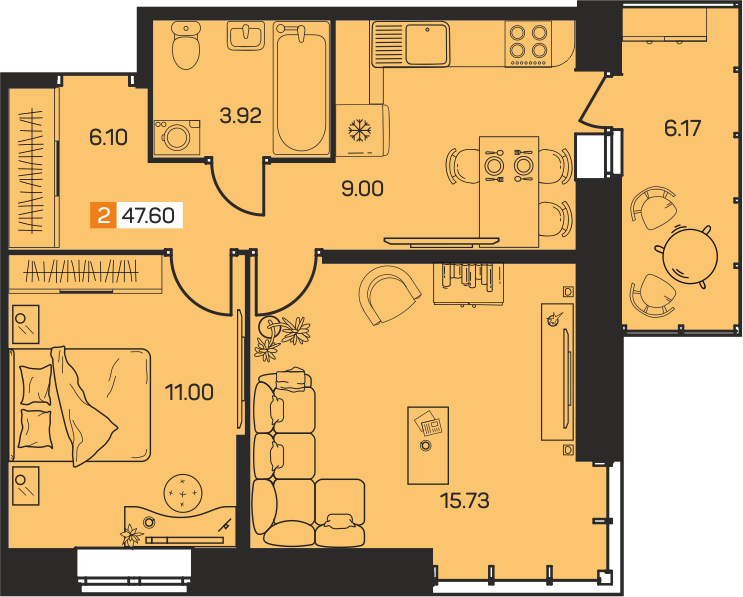 Общая площадь 47.6 м2
