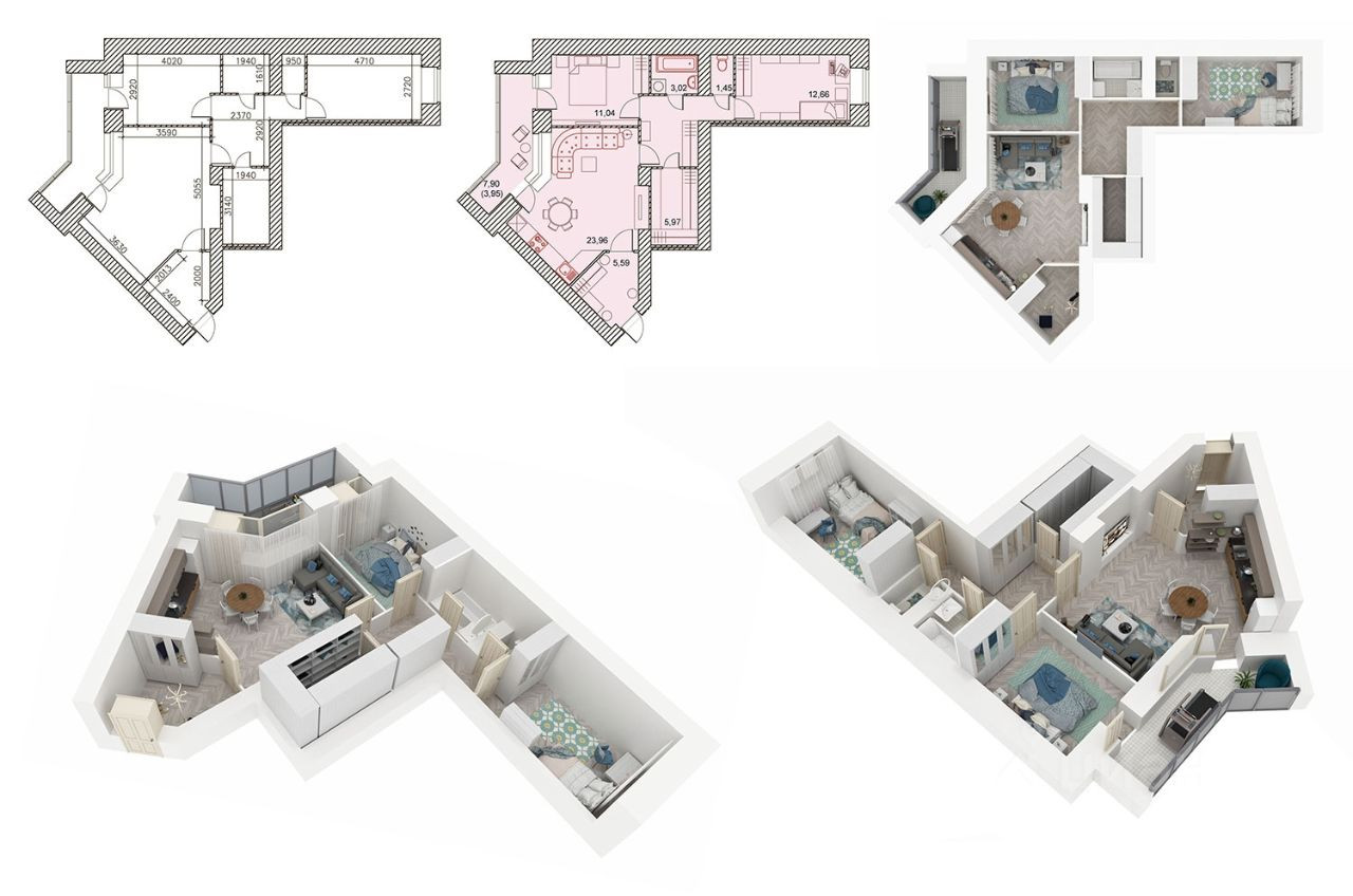 - Современная Евро-планировка: огромная кухня-гостиная интересной формы с четким зонированием, две раздельные комнаты, отдельная гардеробная 6 кв.м. и просторная прихожая!