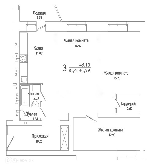 Общая площадь 83 м2