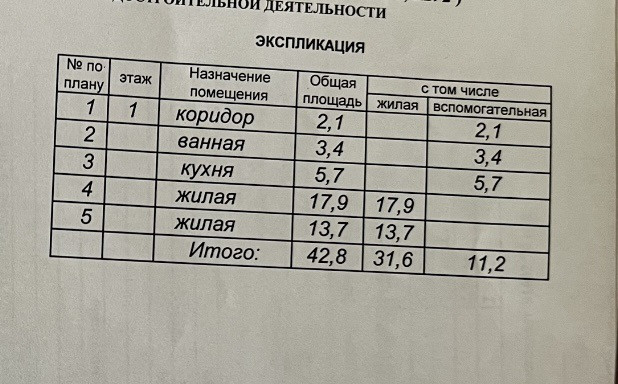 Общая площадь 42.8 м2