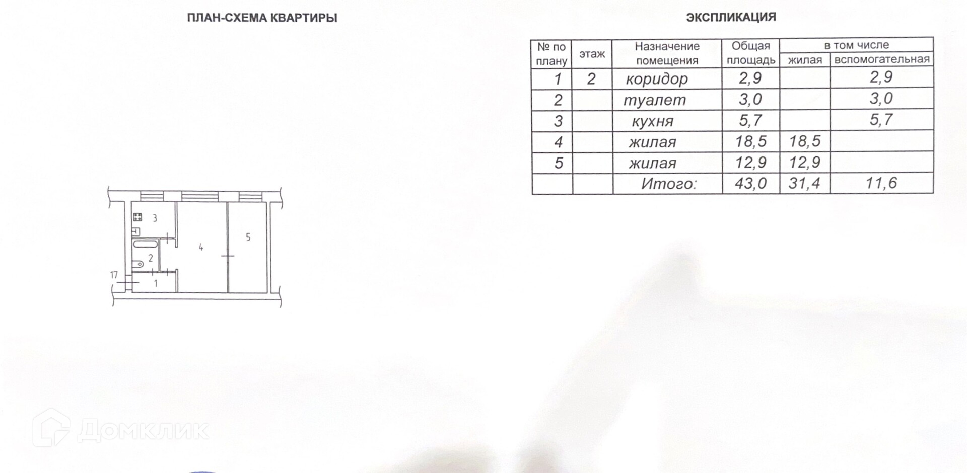 Общая площадь 43 м2