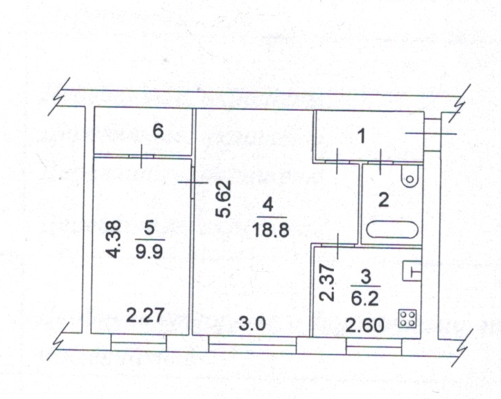 Площадь кухни 6.2 м2
