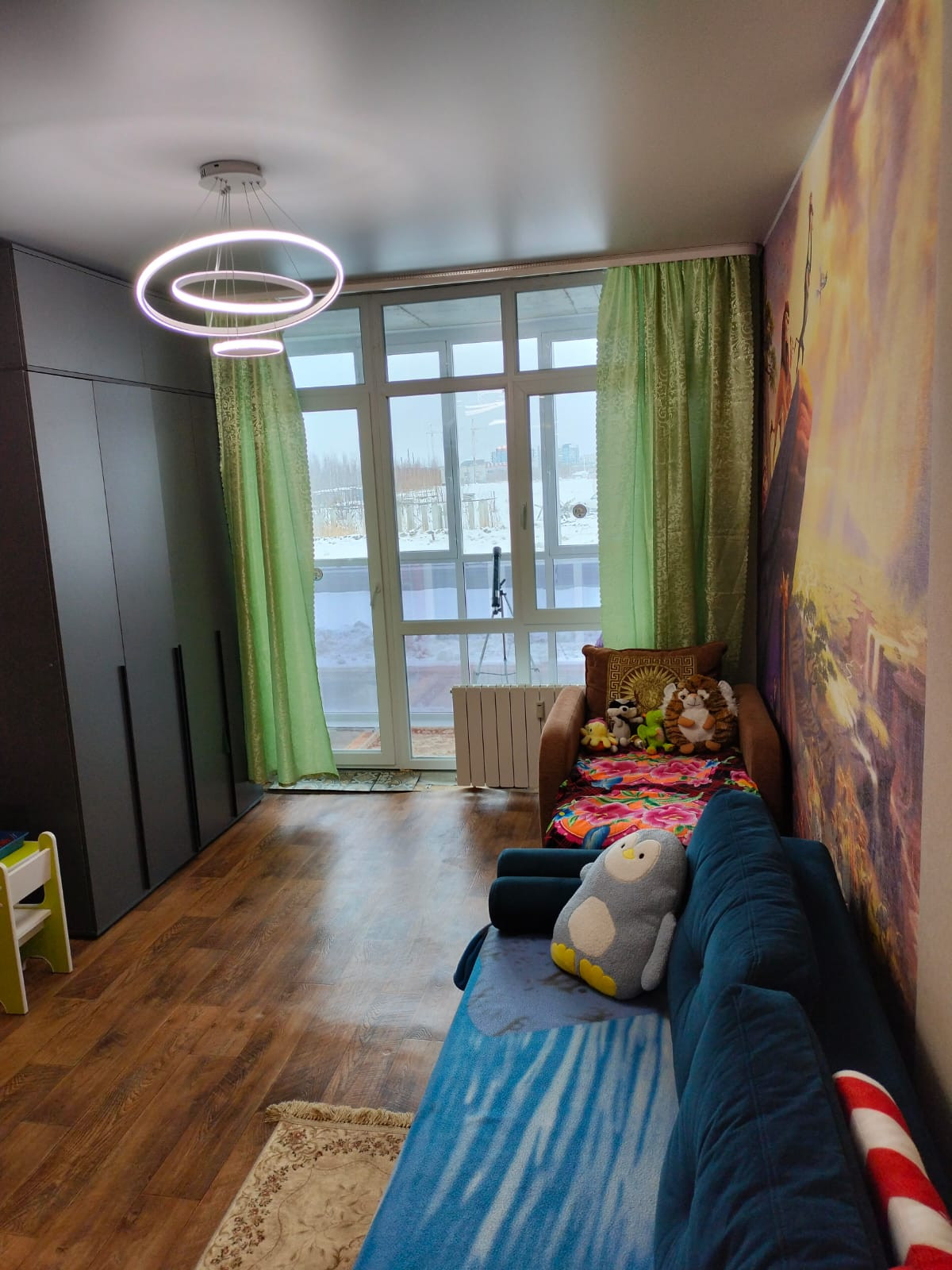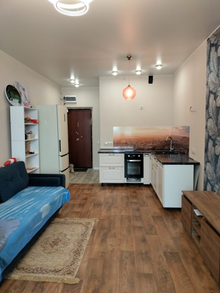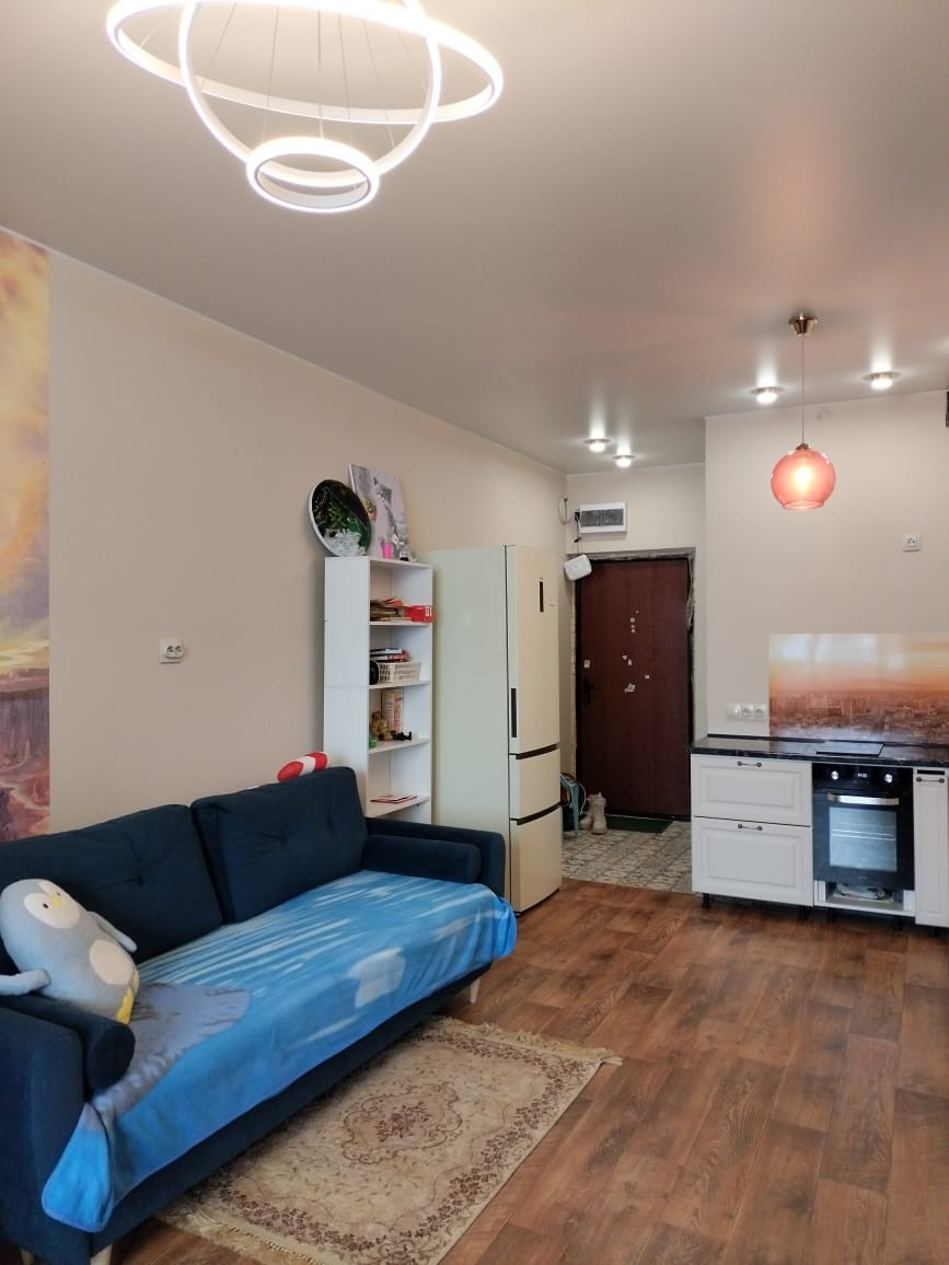 В квартире сделан свежий ремонт: полы линолеум, так же плитка в зоне прихожей, натяжные потолки, освещение квартиры поделено на три зоны(кухонная, отдыха и прихожая).