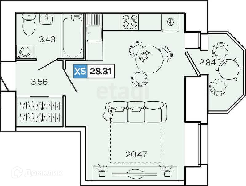 В продаже студия во 2 очереди ЖК Квартал 100.