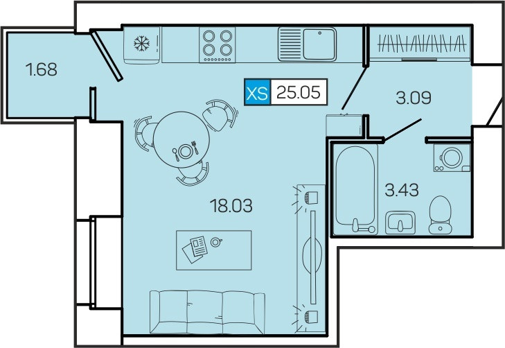 Общая площадь 24 м2
