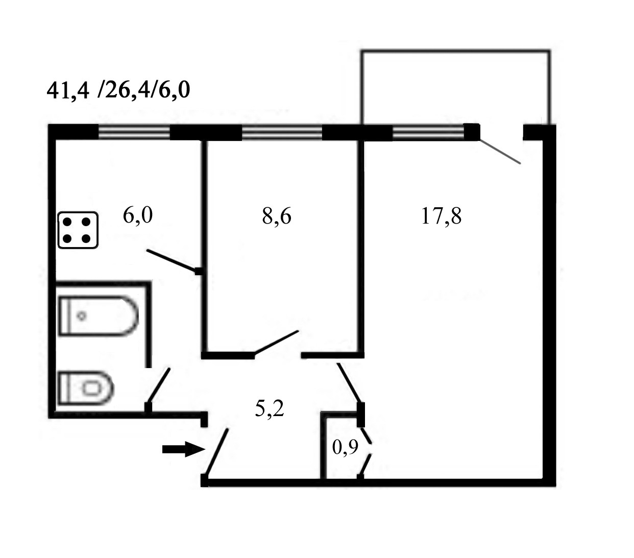 Общая площадь 41.4 м2
