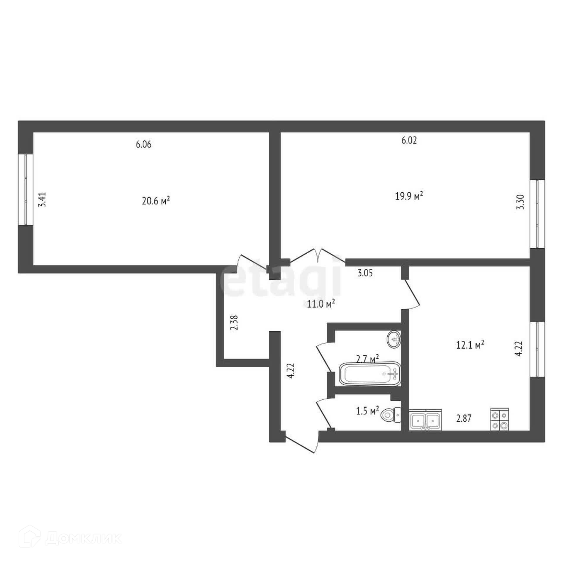 Общая площадь 68 м2