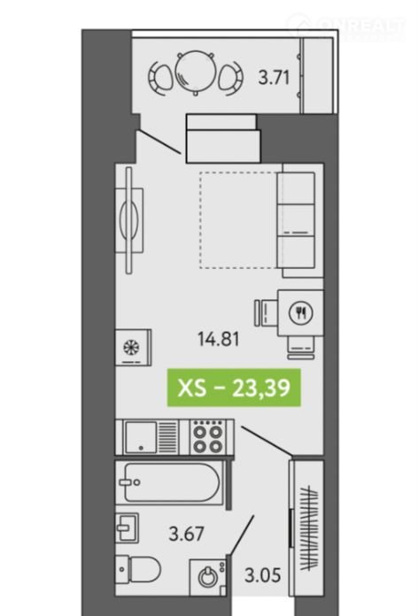 — Площадь - 23,39 кв.м (общая) – компактно и функционально