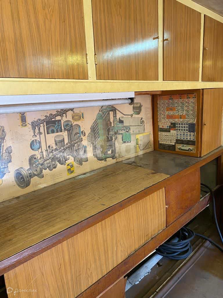 Гараж площадью 17 кв.метров оборудован металлическими воротами. В гараже имеются полки и шкафы для хранения инструментов и иных вещей. Смотровая яма есть, однако ей требуется ремонт.