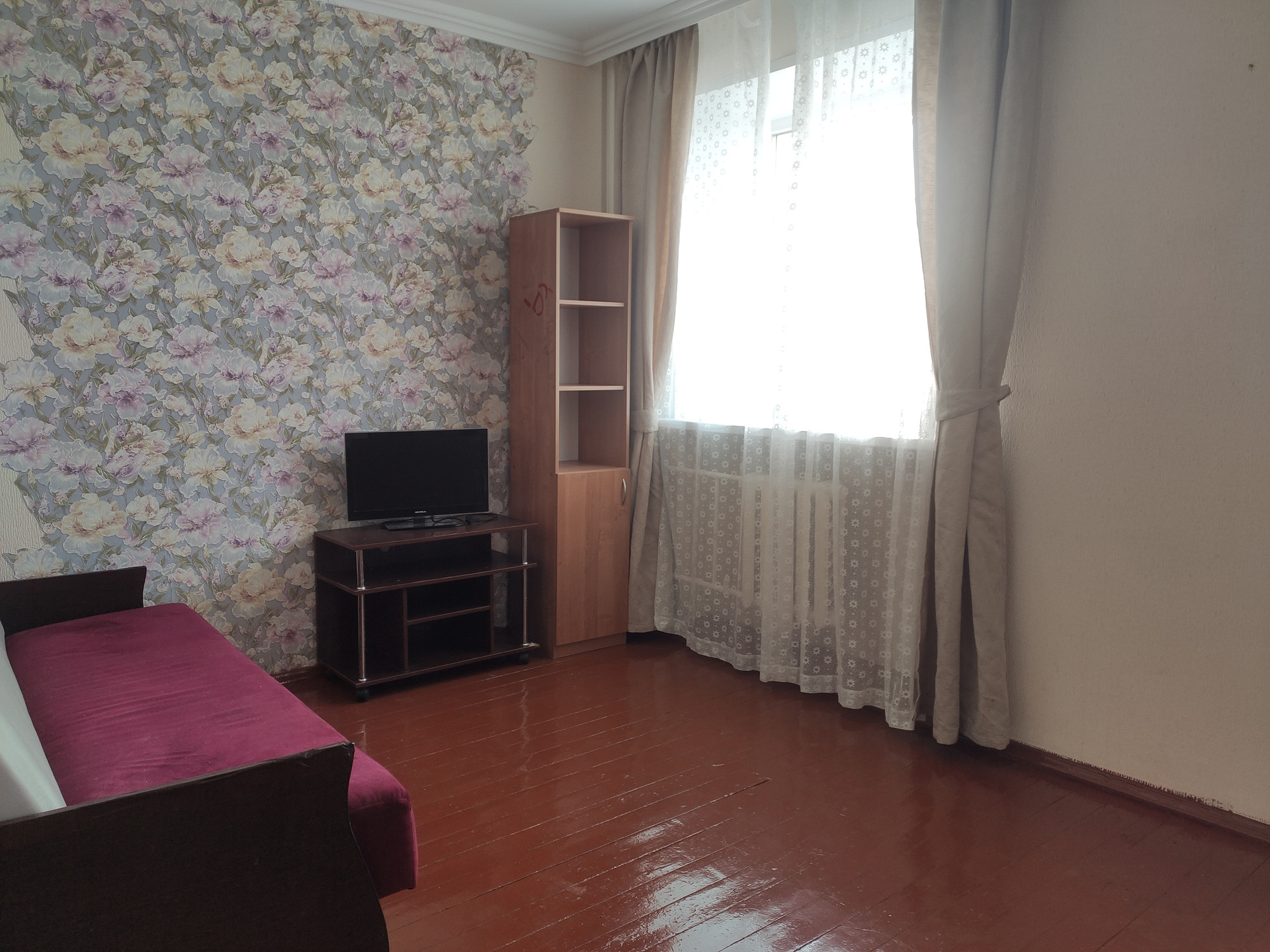 Комната сдается с мебелью и техникой. Есть диван, шкаф, холодильник, стиральная машинка, своя зона на кухне.