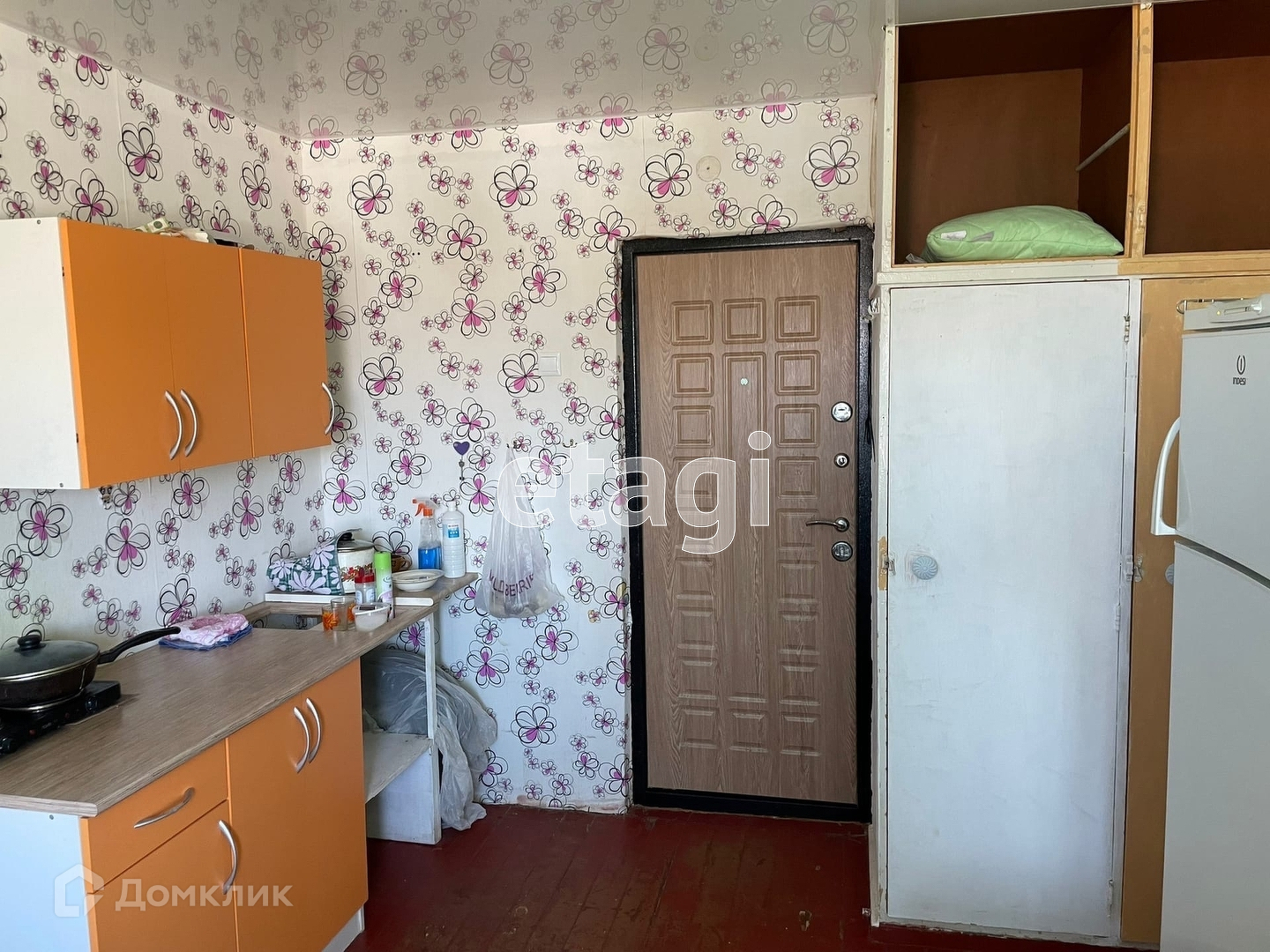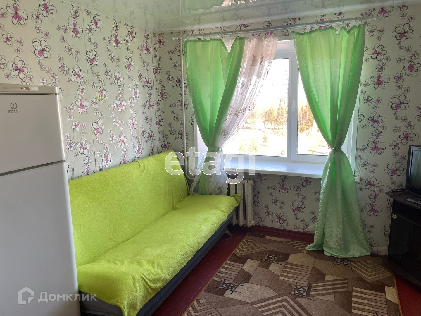 Комната в отличном состоянии. Установлен стеклопакет, входная дверь металлическая, в комнате чисто - теплая, светлая. Есть все необходимое для проживания, выделена зона кухни, диван, холодильник, плитка в комнате.