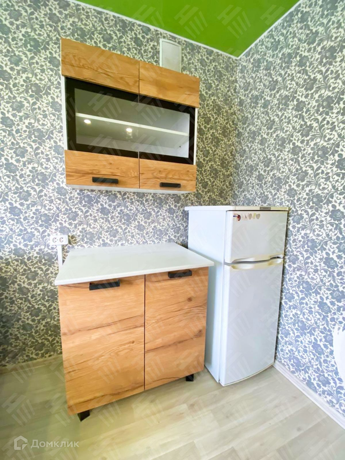 В комнате сделан ремонт, установлен новый кухонный гарнитур и шкаф.