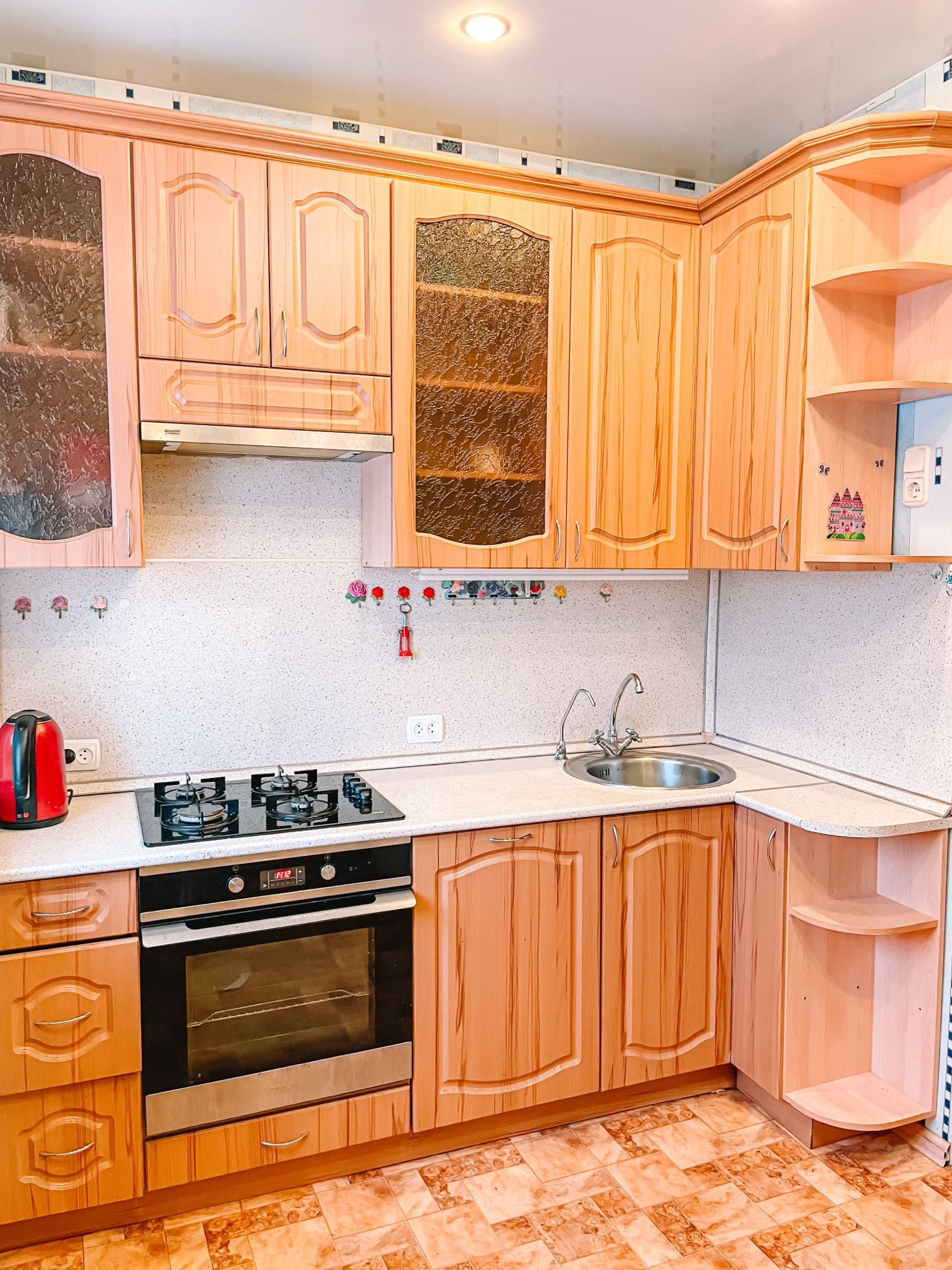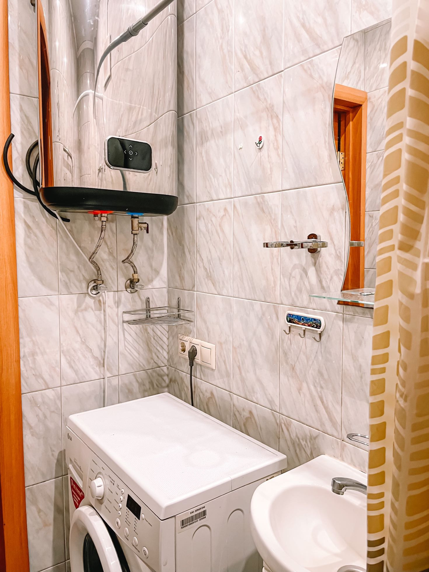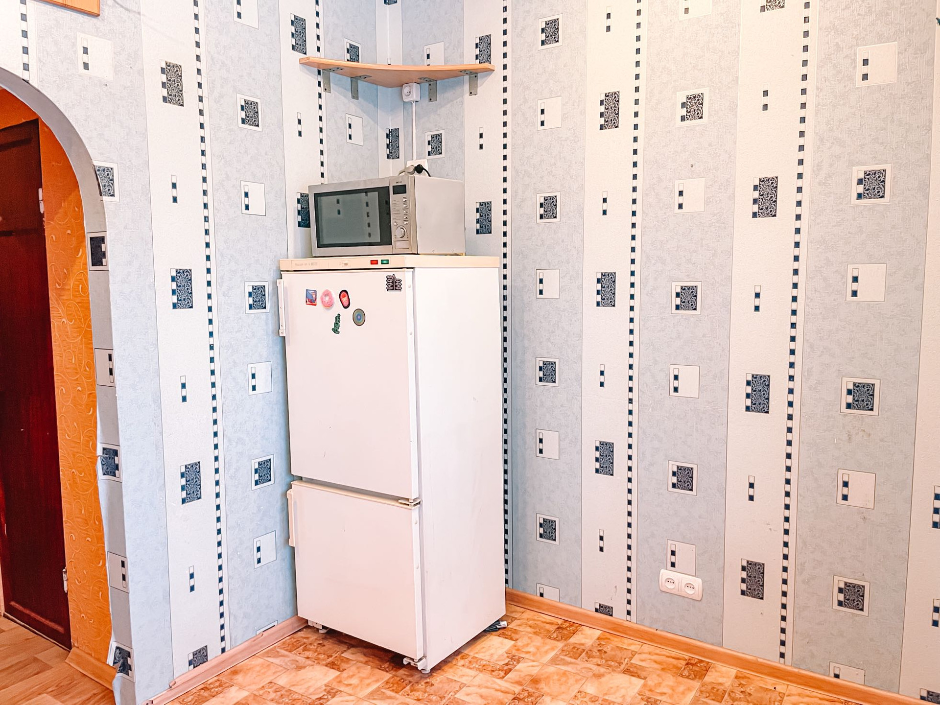 Имеется бытовая техника: холодильник, стиральная машина, водонагреватель, посудомоечная машина, электрический чайник, микроволновая печь.