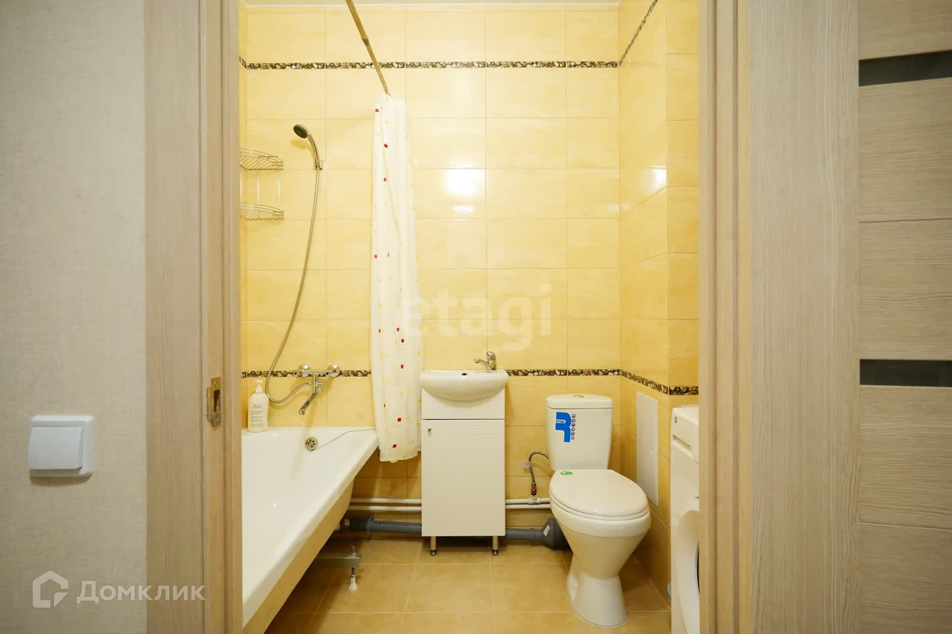Санузел с полноценной ванной и стиральной машиной.