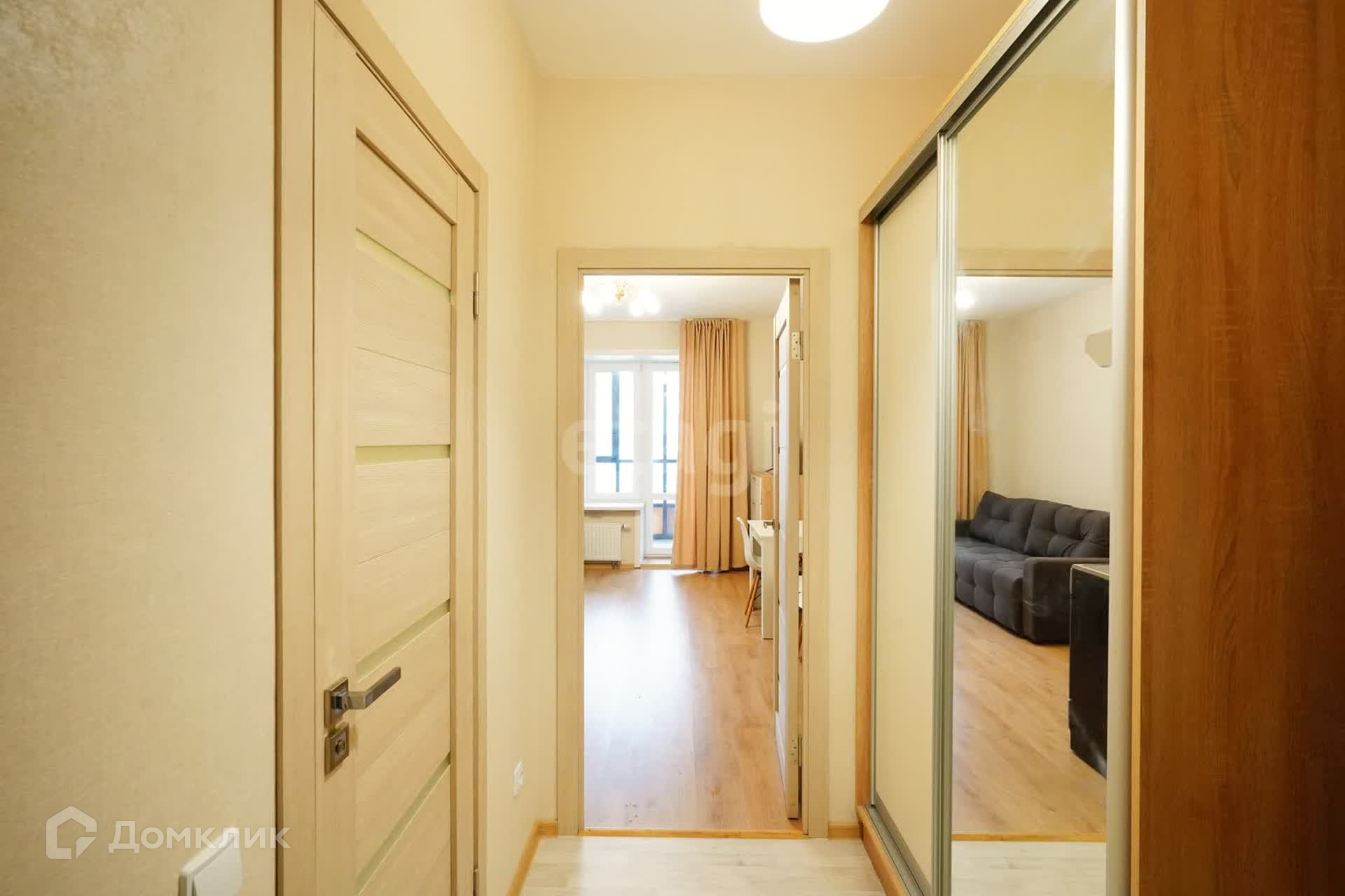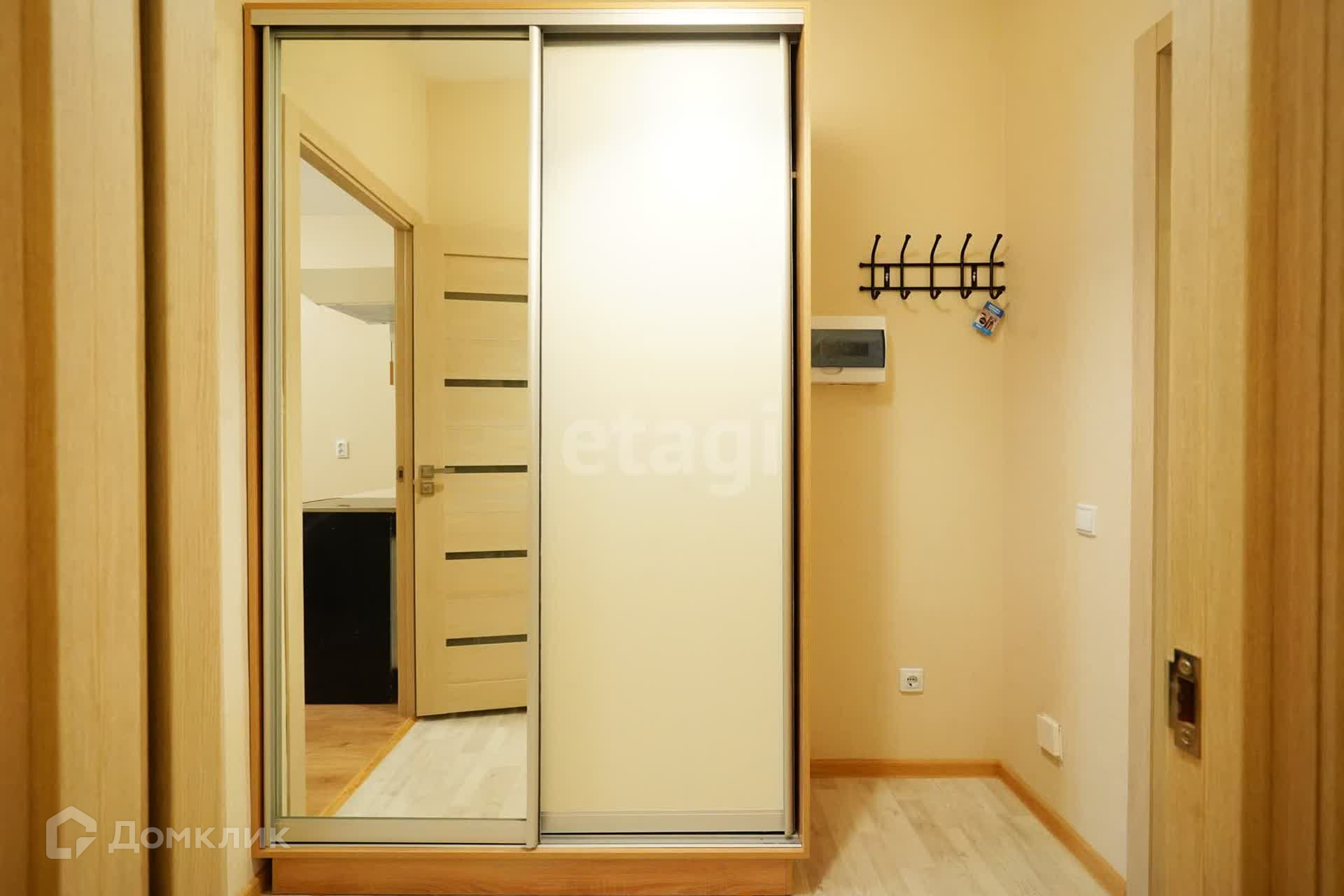 В прихожей вместительный шкаф с зеркалом.