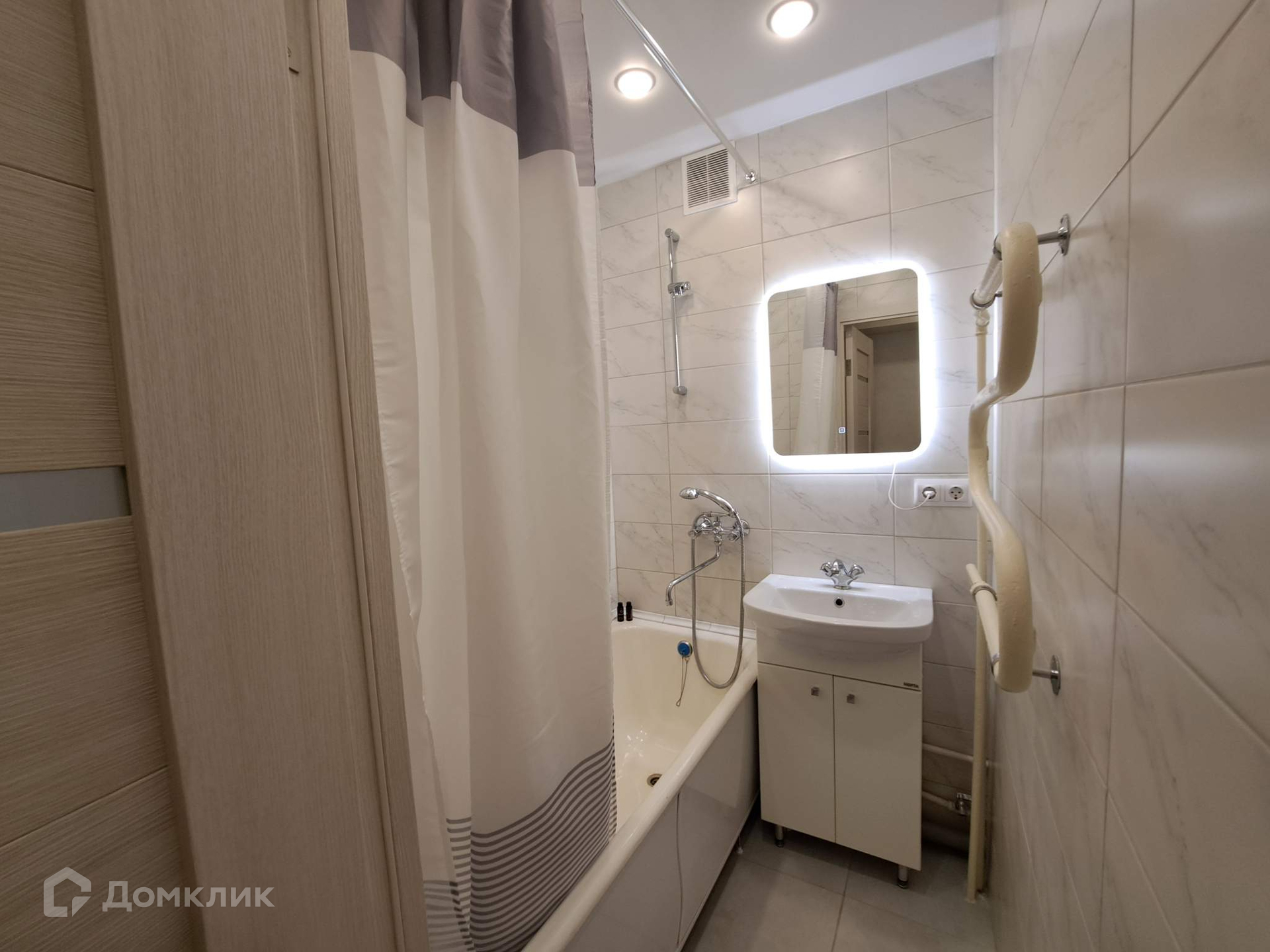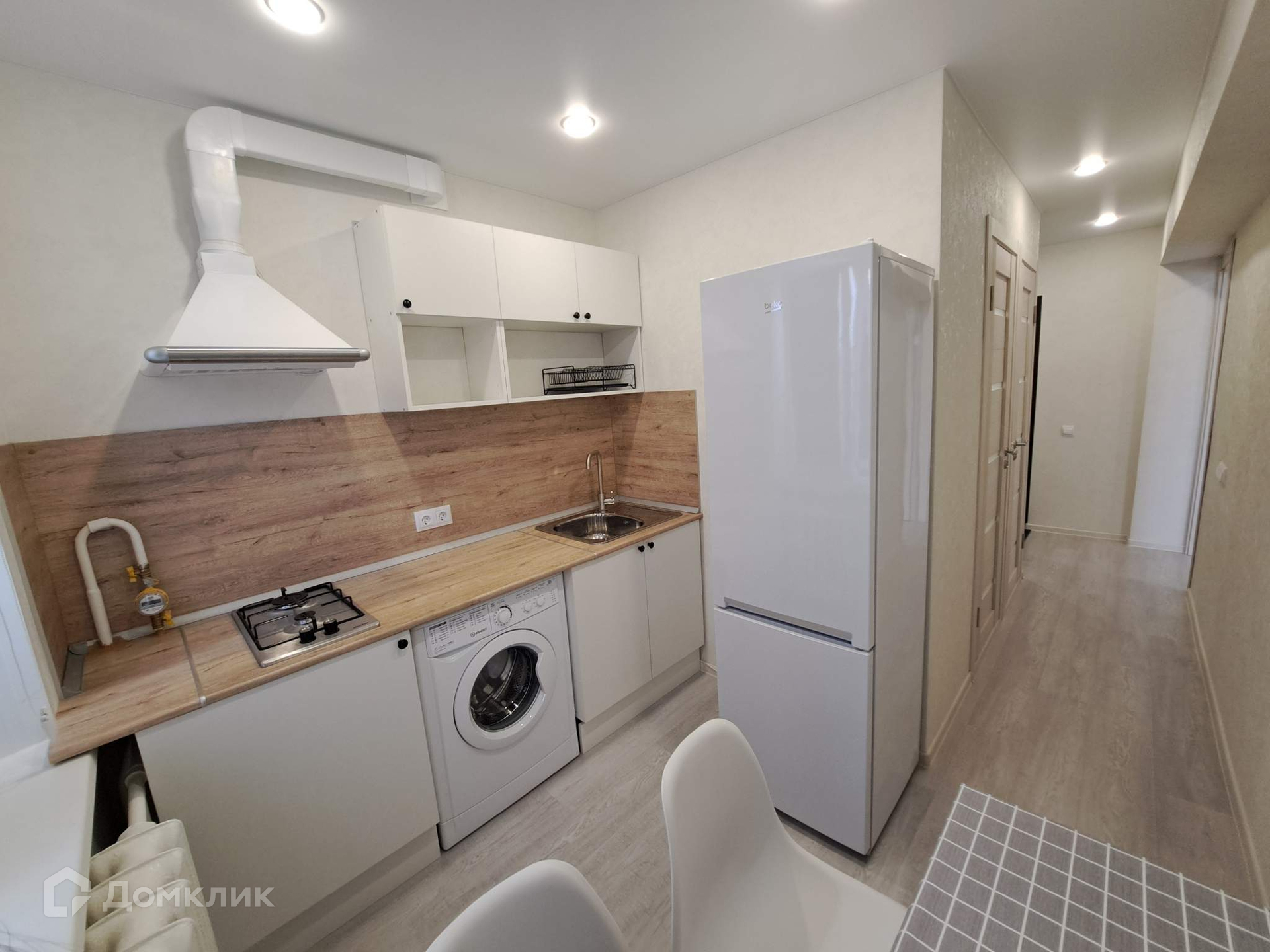 Жилая площадь 18.4 кв.м, кухня 5.5 кв.м, внутри евро ремонт. Квартира меблированная, есть бытовая техника: стиральная машина, холодильник, телевизор, встроенная техника. Раздельных санузлов 1, совмещенных санузлов нет, есть ванна, входная дверь железная, балконов - 1, лоджий - нет, окна выходят во двор.