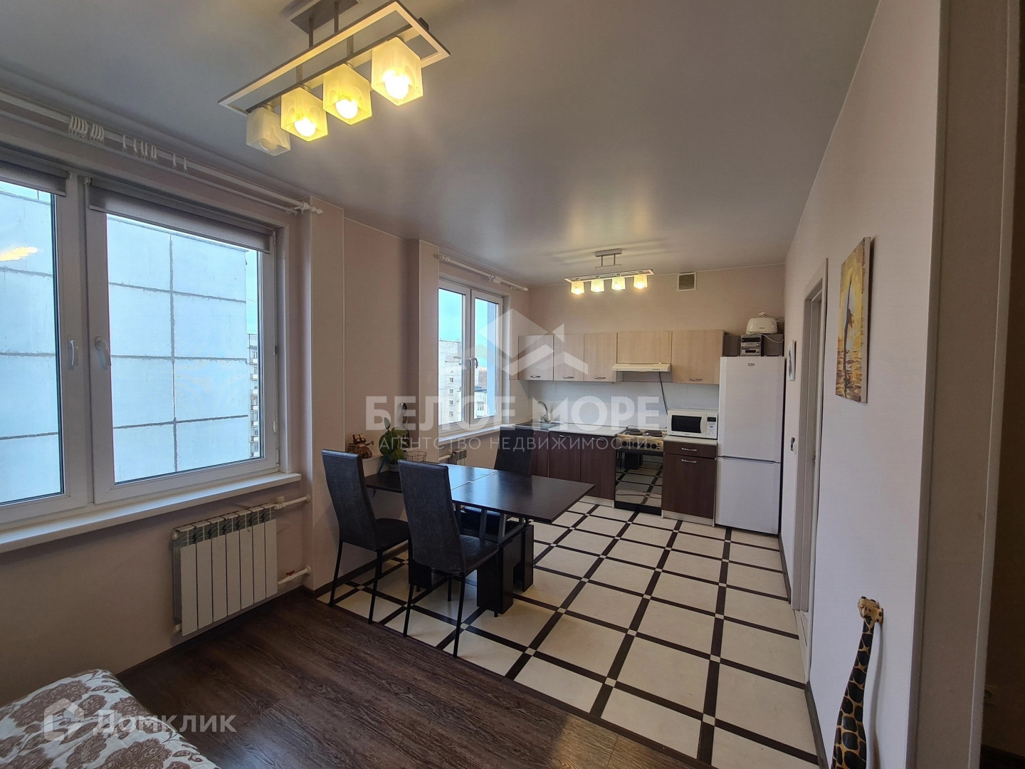 -Хорошее современное состояние. Кухня-гостиная и спальня расположены на разные стороны.