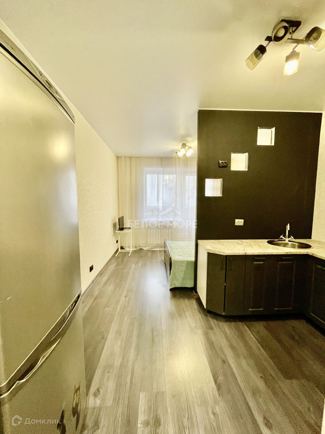 Студия общей площадью в 24 кв. метра в отличном состоянии, сделаны натяжные потолки, уложен ламинат, ванная комната под ключ. Есть вся необходимая техника.