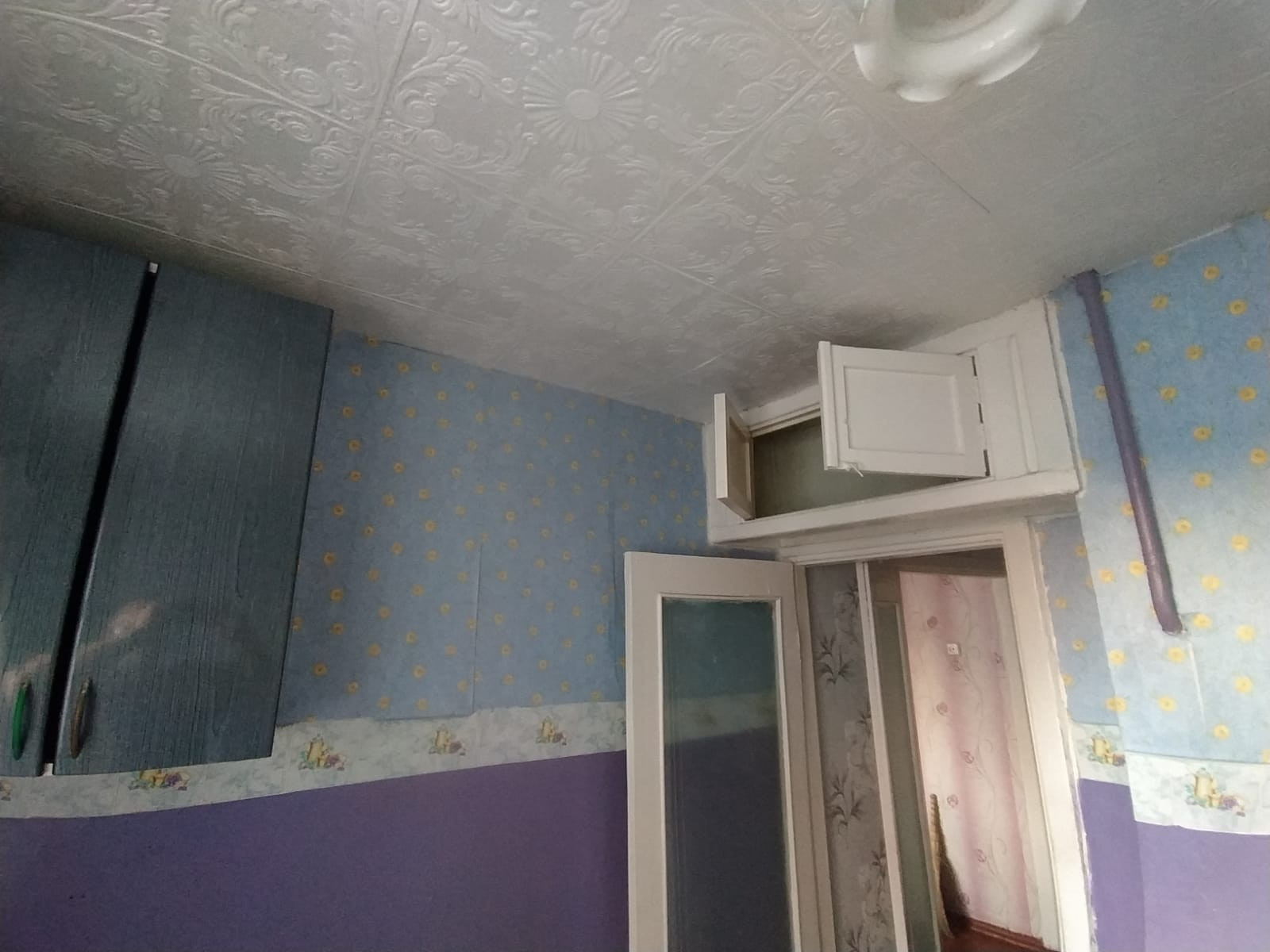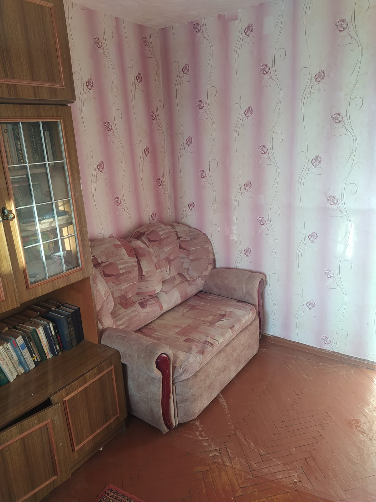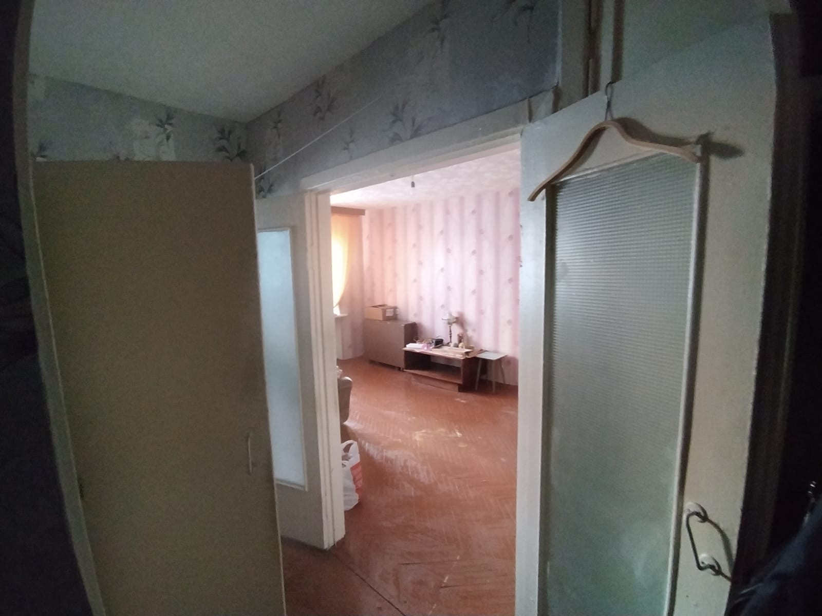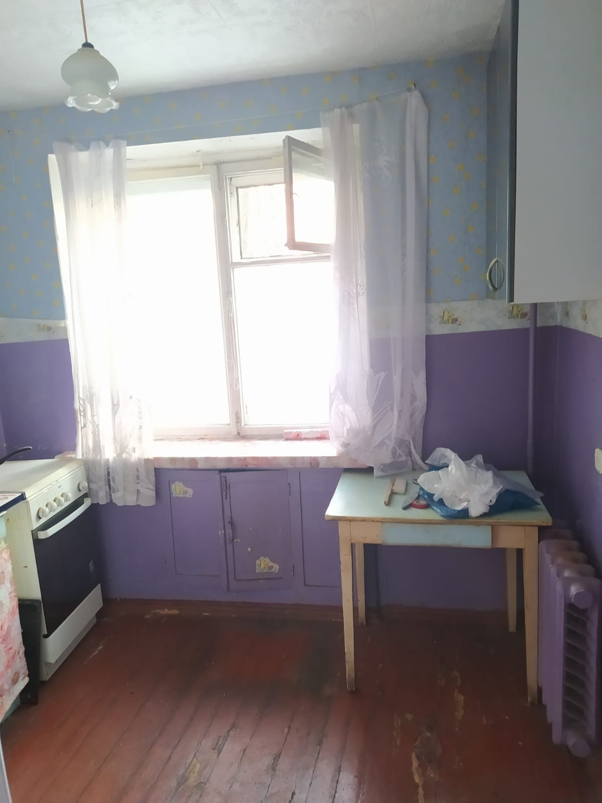 Квартира расположена на первом этаже кирпичного дома, окна выходят на южную сторону. В подвале находится торговый центр, поэтому в квартире не бывает "подвального" запаха. Состояние жилое, окна и двери старые. Санузел раздельный.