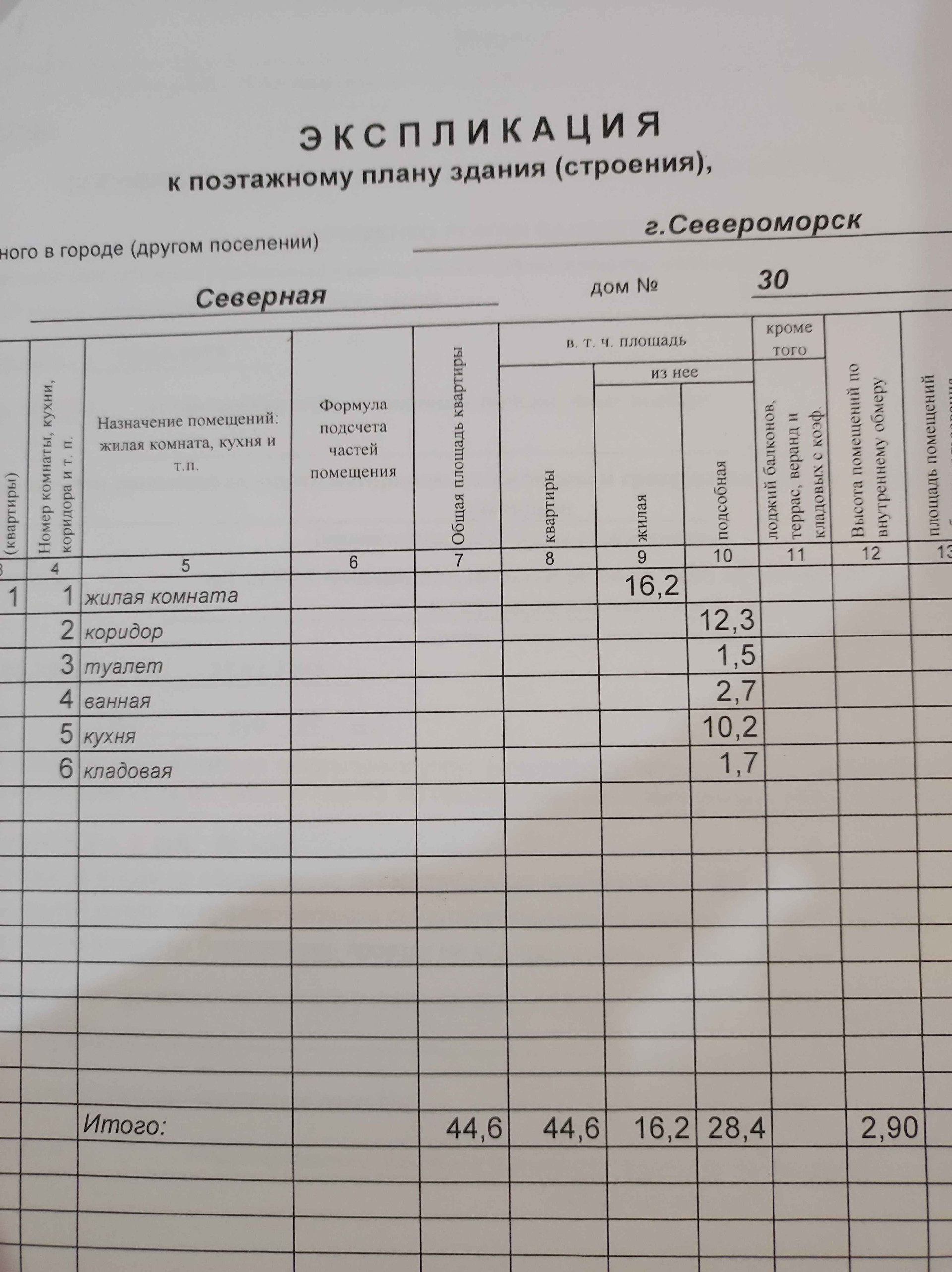 1-комнатная квартира, 44.6 м2, этаж 1 / 2, на продажу в Североморске, Северная улица, 30