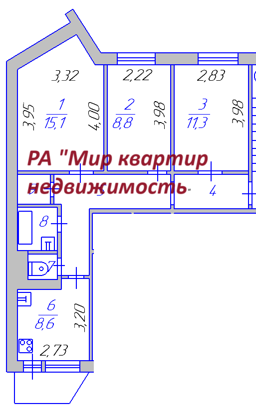 Количество комнат 3