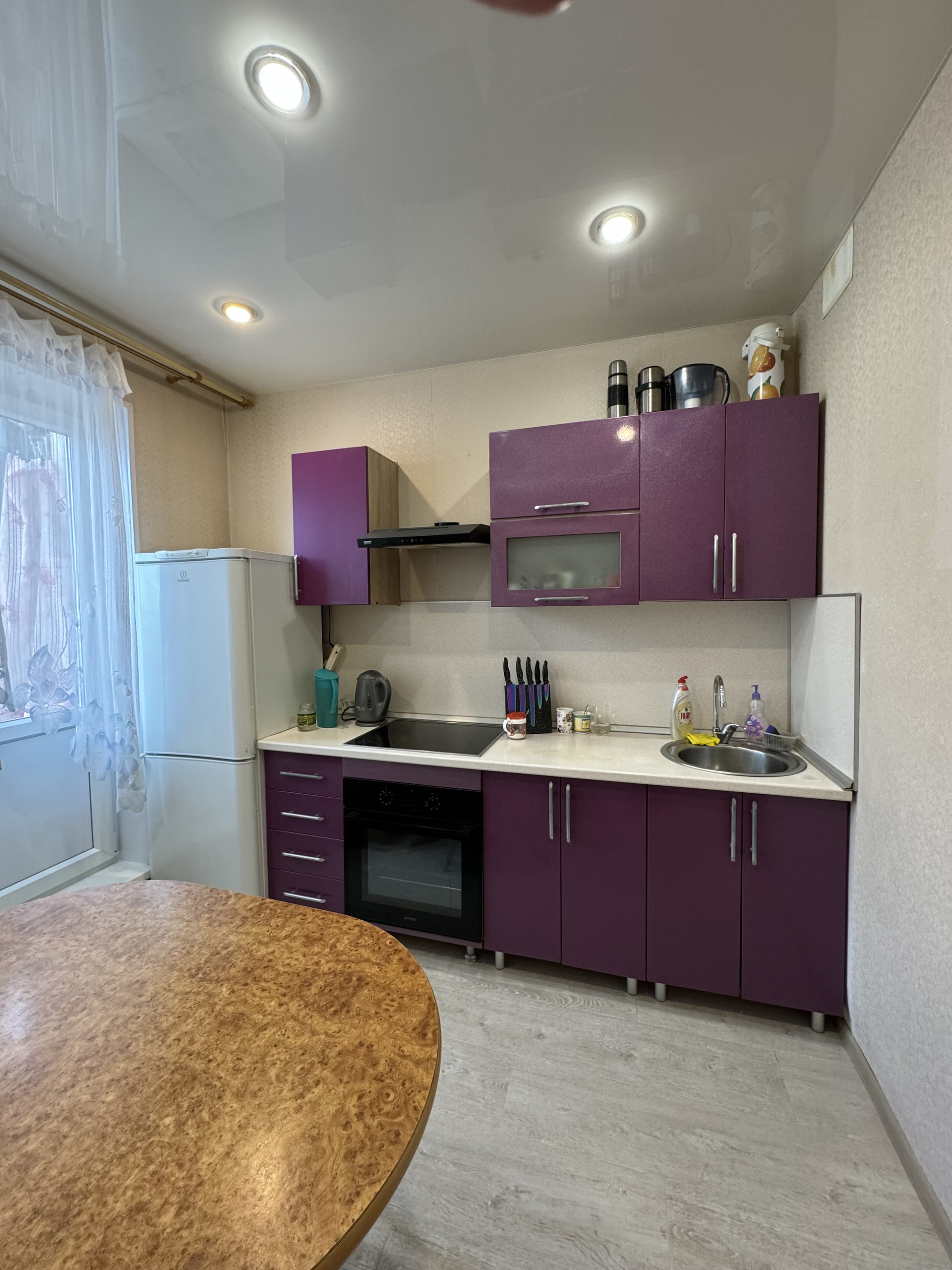 *натяжной потолок в коридоре и на кухне;