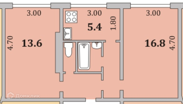 Жилая площадь 30.4 м2