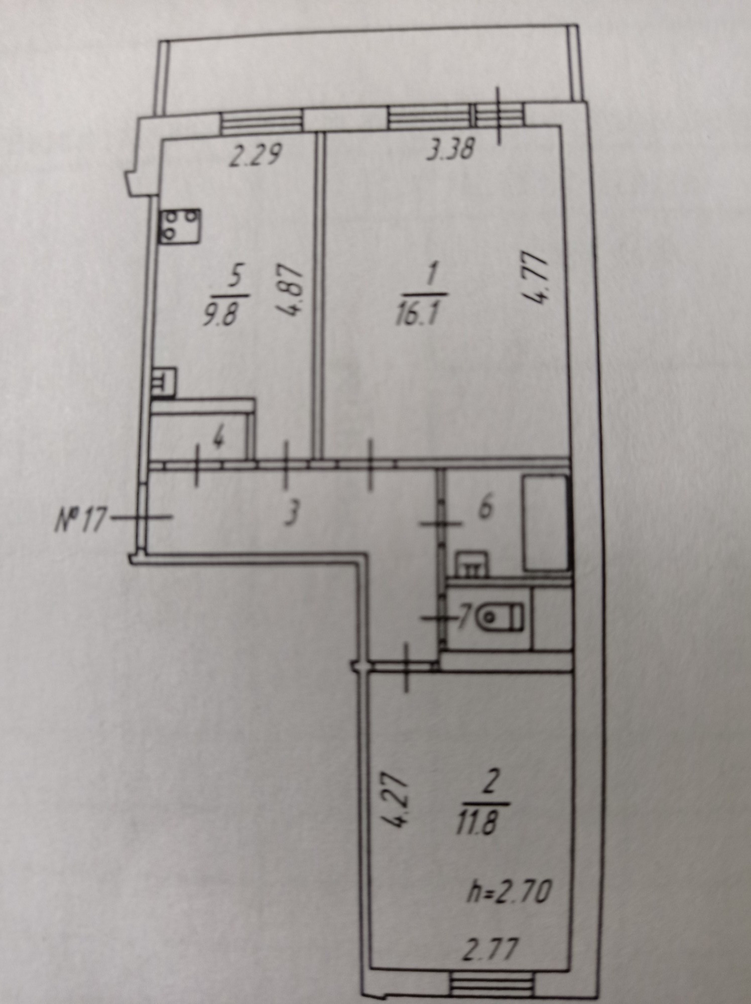 Высота потолков 2.7 м