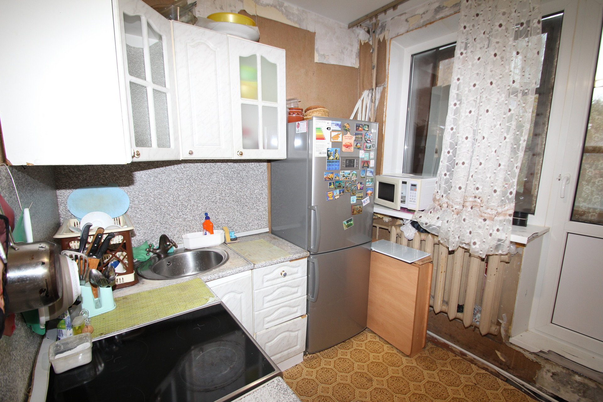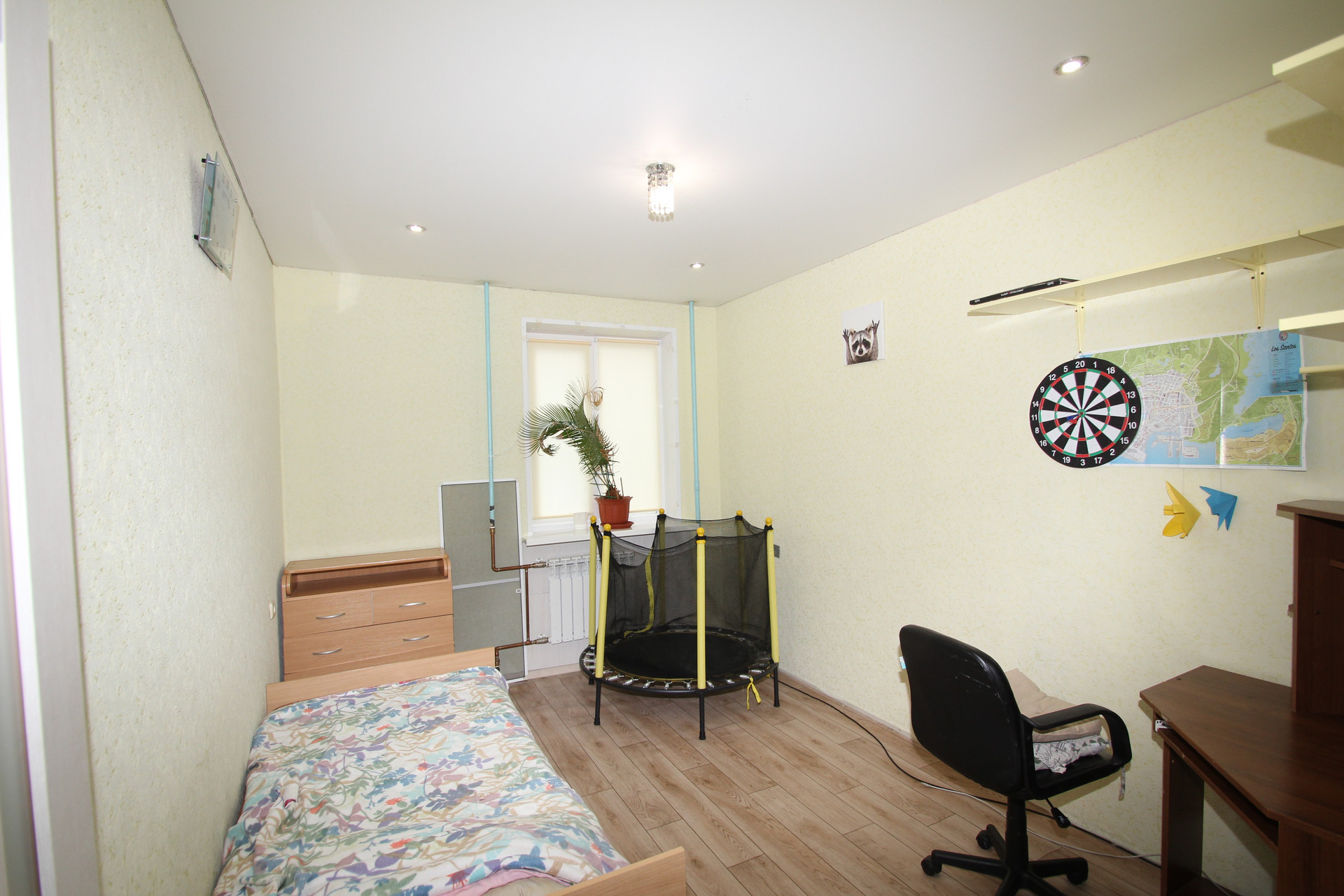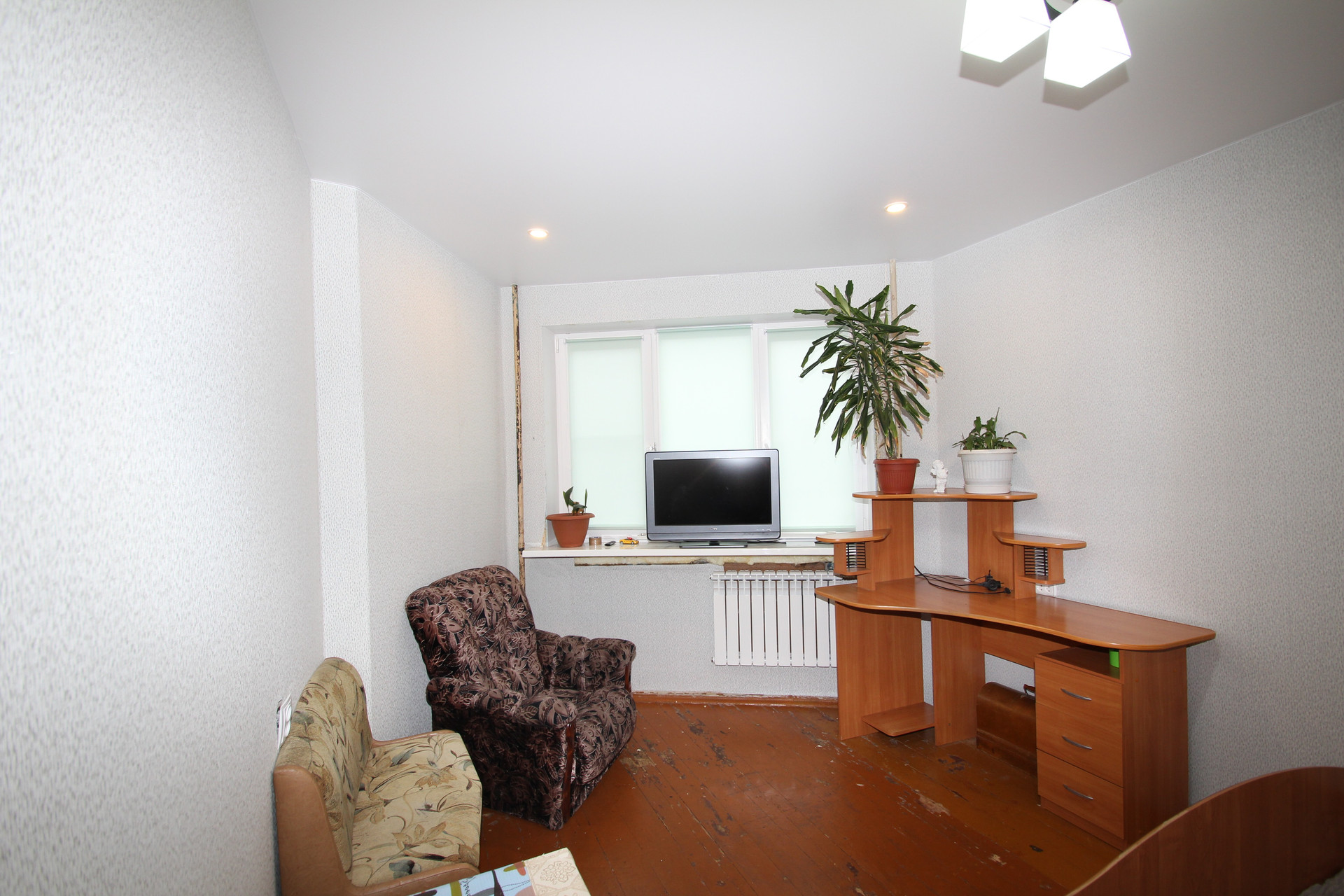 Высокий первый этаж, очень теплая квартира. Комнаты изолированные, окна стеклопакеты, балкон застеклен. Есть необходимая мебель и техника: стиральная машинка, холодильник, микроволновая печь, телевизор.