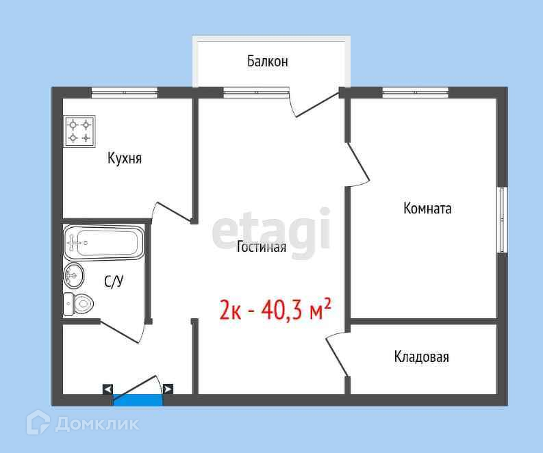 Общая площадь 40.3 м2