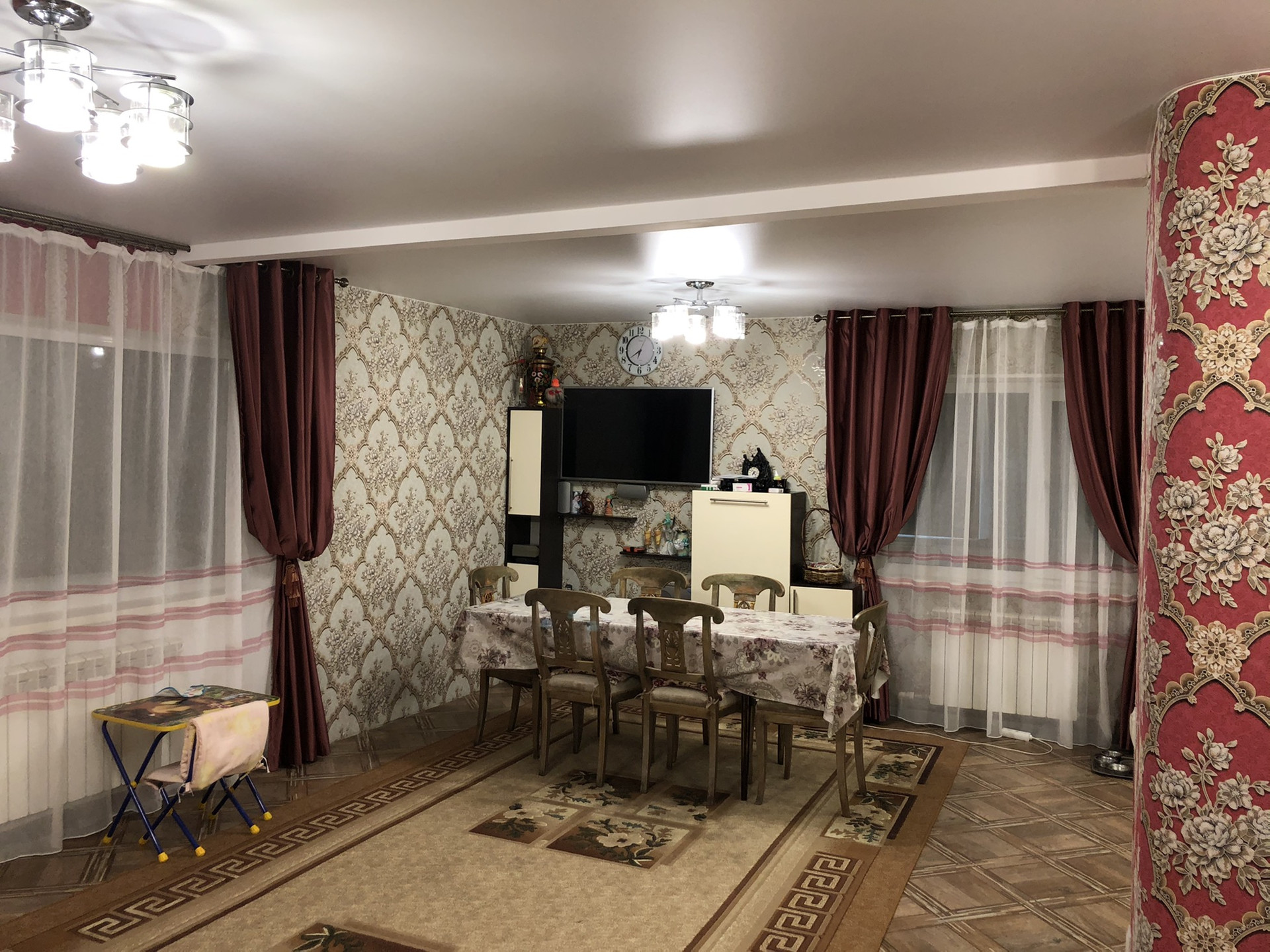 Год постройки дома 2010, брус, обшит сайдингом+ утеплён. В хорошем состоянии, пластик, натяжные потолки. На 1 этаже кухня+гостиная, санузел, коридор. На 2 этаже 3 спальни, санузел.