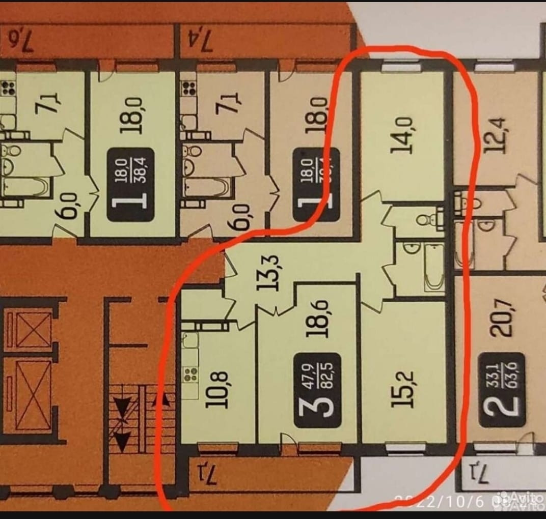 Все комнаты просторные и изолированные: 18.6кв.м., 15.2кв.м. и 14кв.м. В прихожей рядом с кухней есть гардеробная.