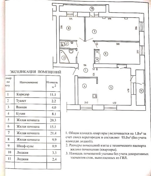 Сделана перепланировка из 5-ти в 4-х комнатную.