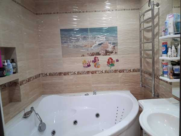 Сан узел выложен качественной плиткой, трубы поменяны, установлена угловая ванна с гидромассажем.