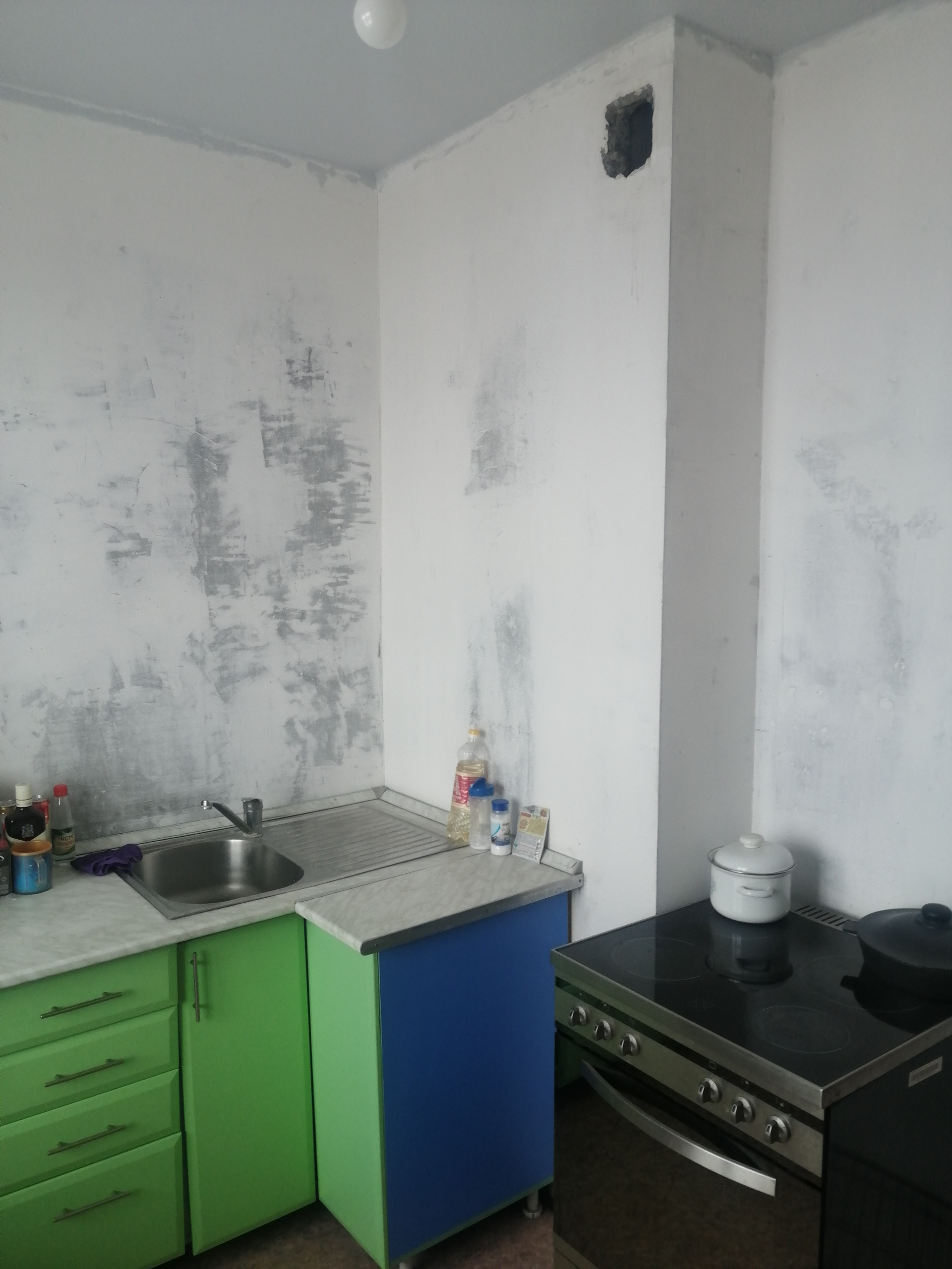 Квартира подготовлена под ремонт.  С/у - совместный (пол кафель, стены панели).