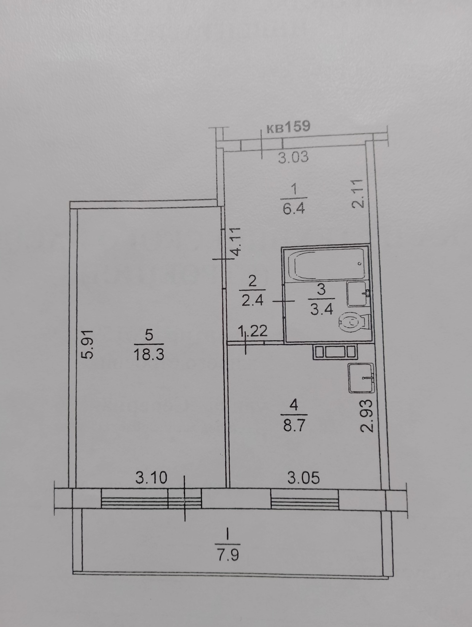 Жилая площадь 18.3 м2