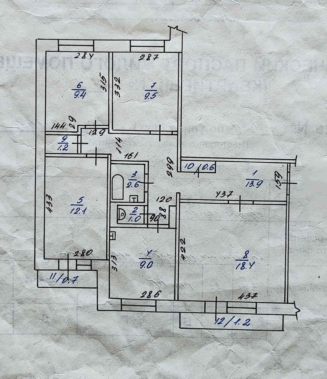 Жилая площадь 49.4 м2