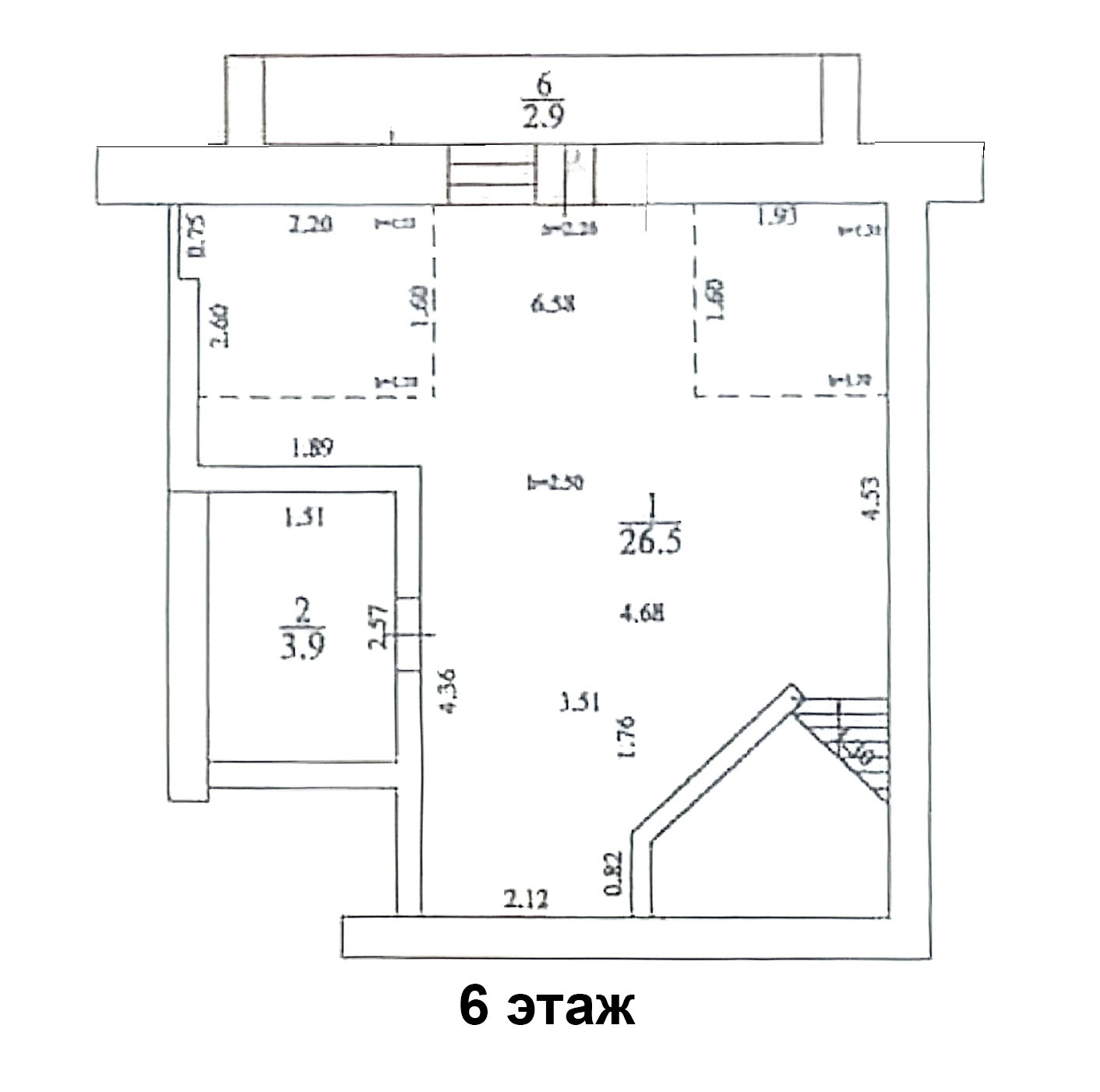 На 6 этаже - Гостиная, Кухня, Открытая лоджия, Прачечная, Санузел с душем 3,9 м2.