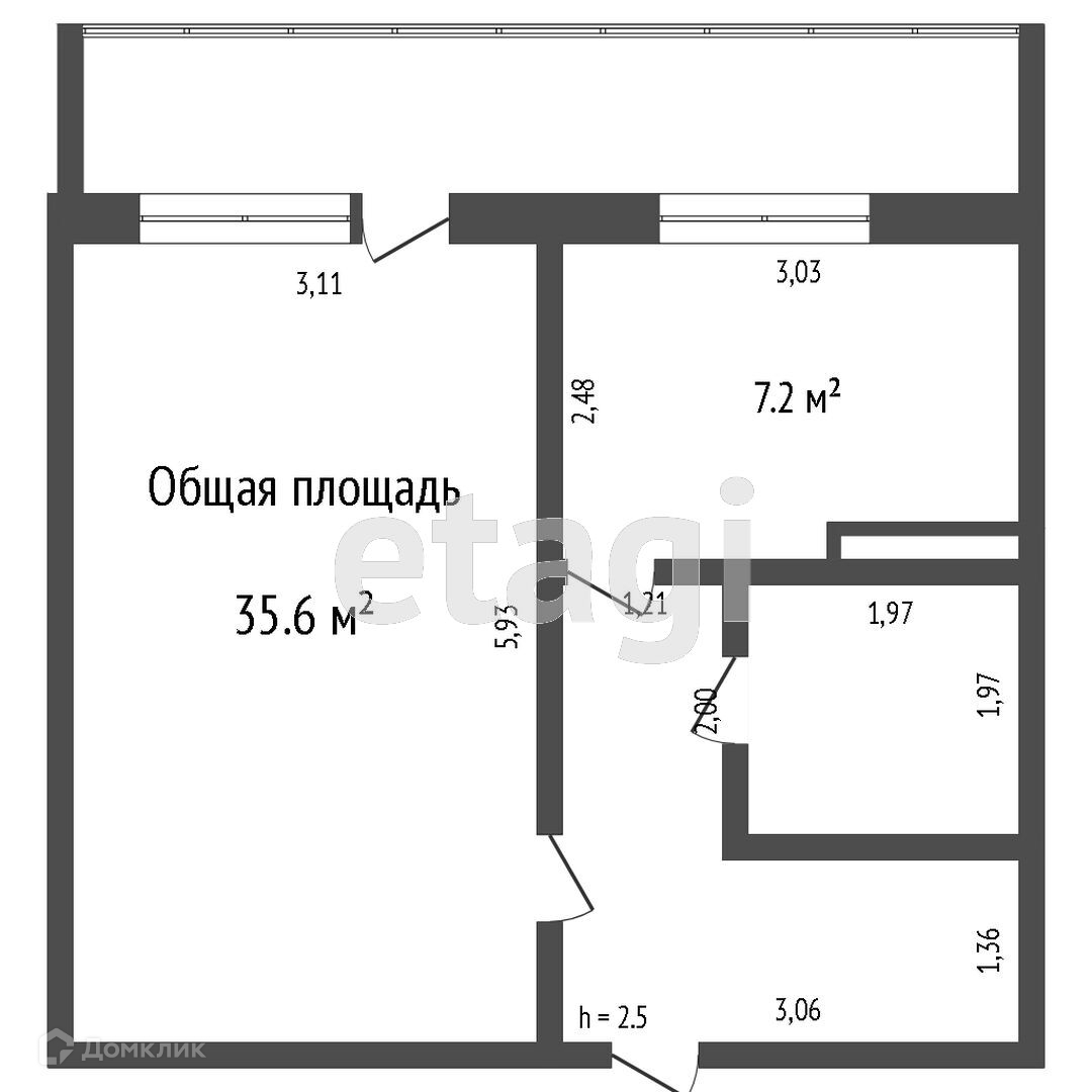 Общая площадь 35.5 м2
