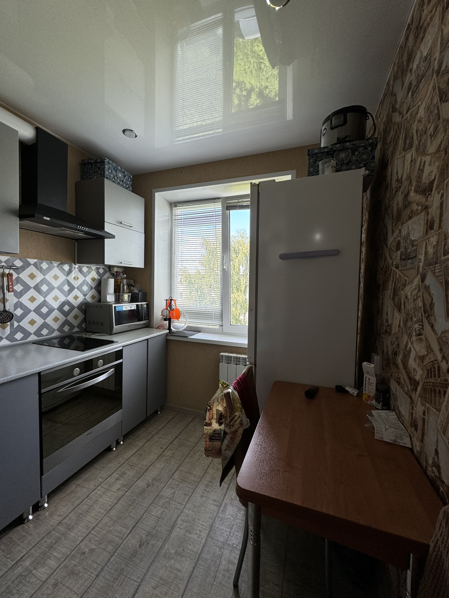 В квартире остается: бойлер, кухонный гарнитур с дорогой техникой (вытяжка, духовой шкаф, индукционная плита), два шкаф-купе.