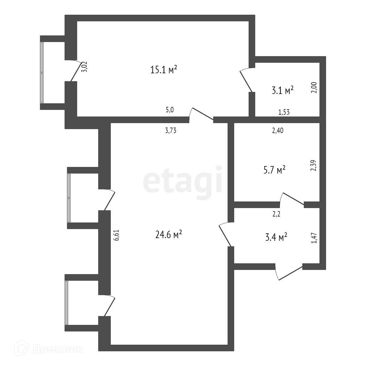 Общая площадь 59.1 м2