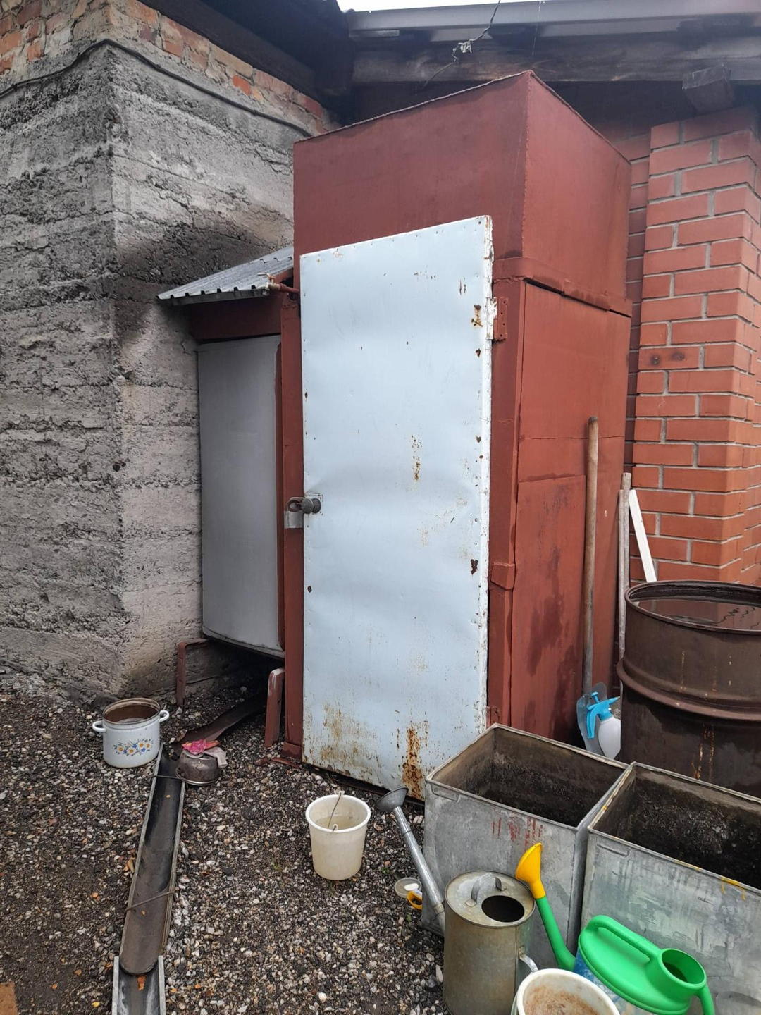 Дом в Новом Поселоке. В доме три жилые комнаты, кухня, большая прихожая, санузел, бытовая комната, баня, санузел с душевой кабиной. Большой сухой придомовой участок, погреб в доме высотой 2 метра(сухо), отопление газовое, вода централизованная, 2 септика( кухня, санузел отдельно), два недостроенных гаража, один гараж используется, крыша металлическая, во втором гараже можно сделать смотровую яму, зимняя утепленная овощная яма, высотой примерно 2,10 метра(сухо, овощи не подмерзают). В огороде теплица, из садовых растений: вишня, яблоня, слива, ирга, смородина, малина. Баня находится в доме, вход из прихожей в предбанник. Крыша дома покрыта шифером, не поменяна, но было запланировано соединить вместе с гаражами.