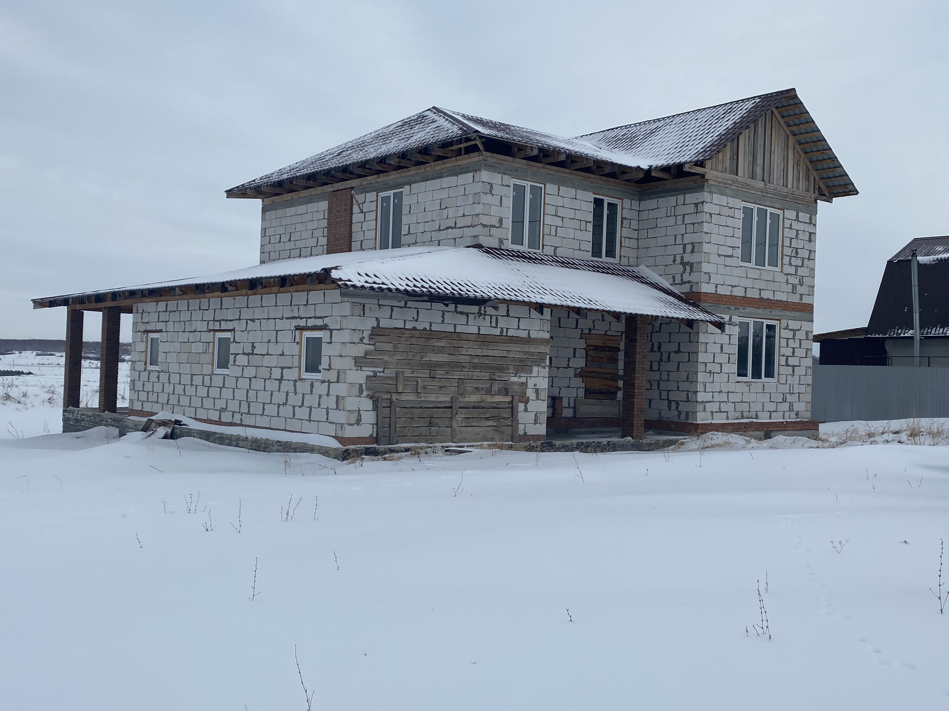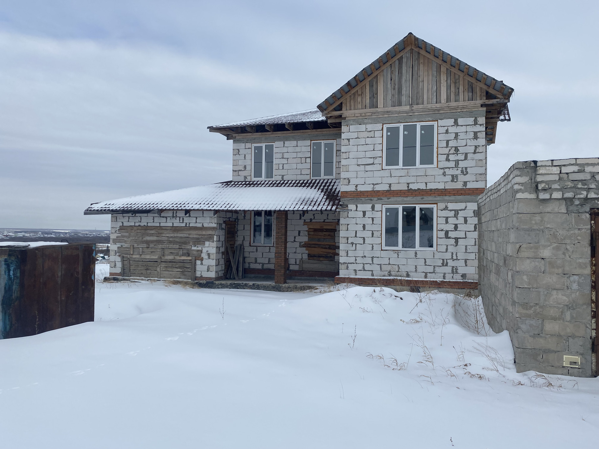 Предлагается к продаже недостроенный коттедж,  общей площадью 240 кв. м. на участке 1 675 кв. м, расположенный на горе в Туманово, состоящий из двух этажей. На первом этаже: одна комната, кухня, гостиная, сан.узел; на втором: три комнаты, сан.узел. Дом выполнен из газоблоков. Из коммуникаций: есть электричество, возможность провести газ. На территории есть хороший капитальный гараж с сигнализацией и электричеством. На фото представлен индивидуальный проект дома, по которому производилось строительство. Земля в собственности, есть разрешение на строительство. Рядом есть еще один участок 17 соток, который предлагается по отдельной цене, в собственности. В шаговой доступности находится: магазин продуктовый, автобусная остановка. Коттедж расположен в отличном живописном месте, с прекрасным видом на город. Просмотры по предварительной договорённости.