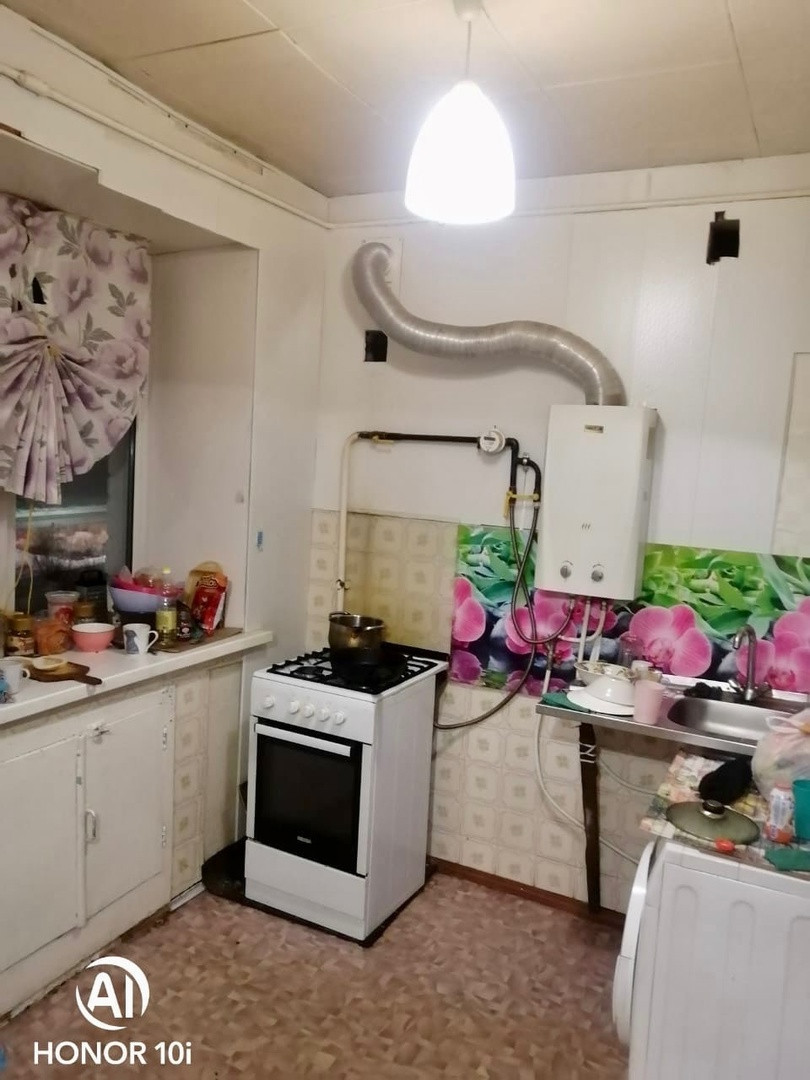 В квартире сделан косметический ремонт: потолок ПФХ-панели, на полу частично линолеум, обои в среднем состоянии. Санузел раздельный, сантехника в хорошем состоянии, пластиковые окна, балкон застеклен. В квартире имеется газовая колонка, счетчик на газ, воду. Оплата за тепло осуществляется только зимой. Окна выходят на солнечную сторону, зимой тепло. Подъезд чистый, соседи спокойные.