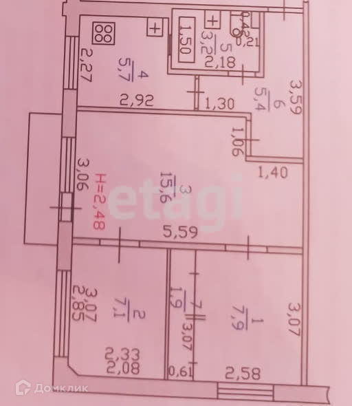 Площадь кухни 5.4 м2