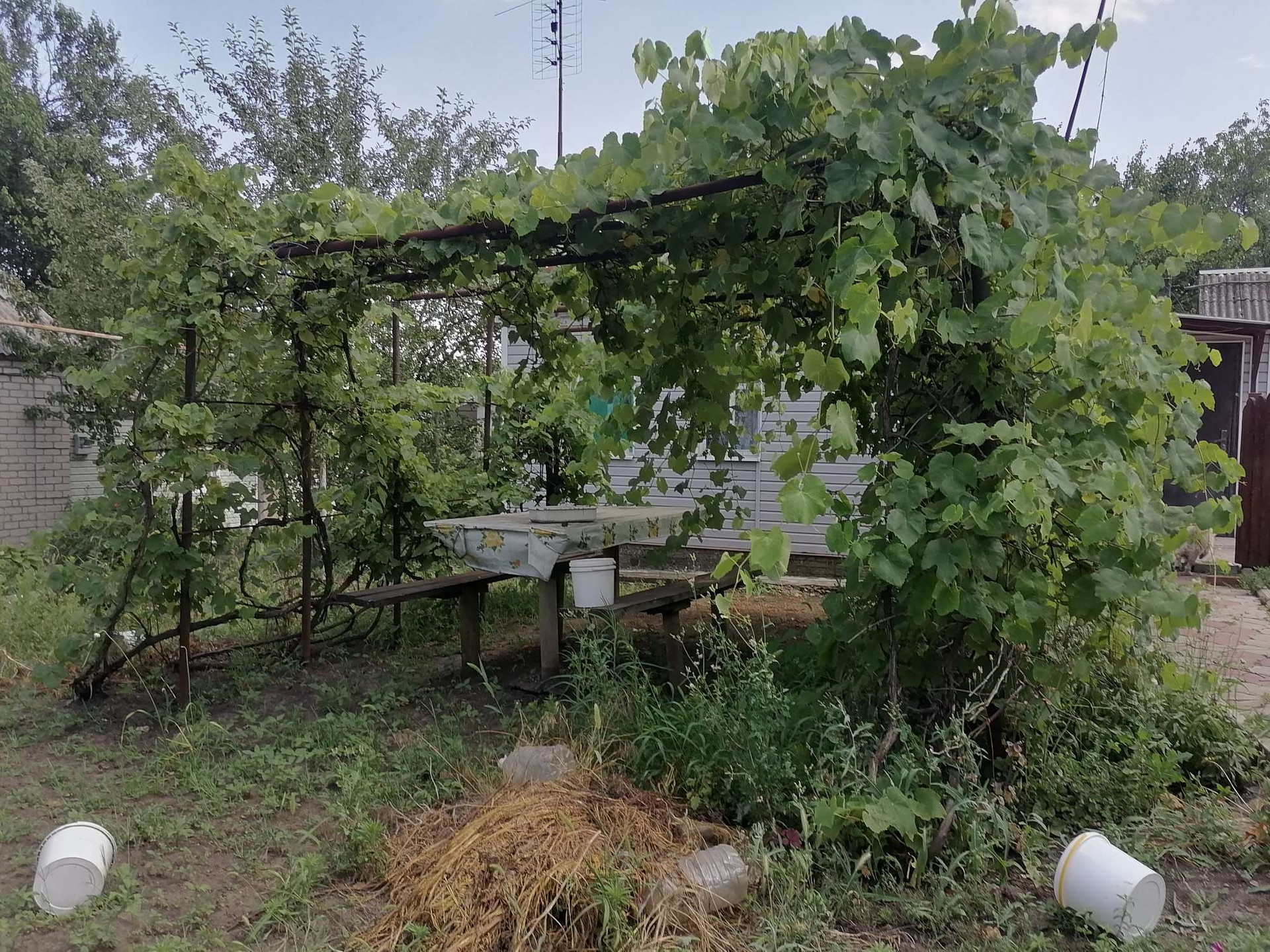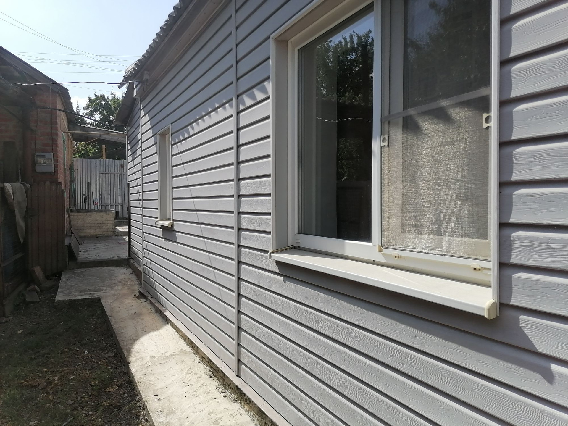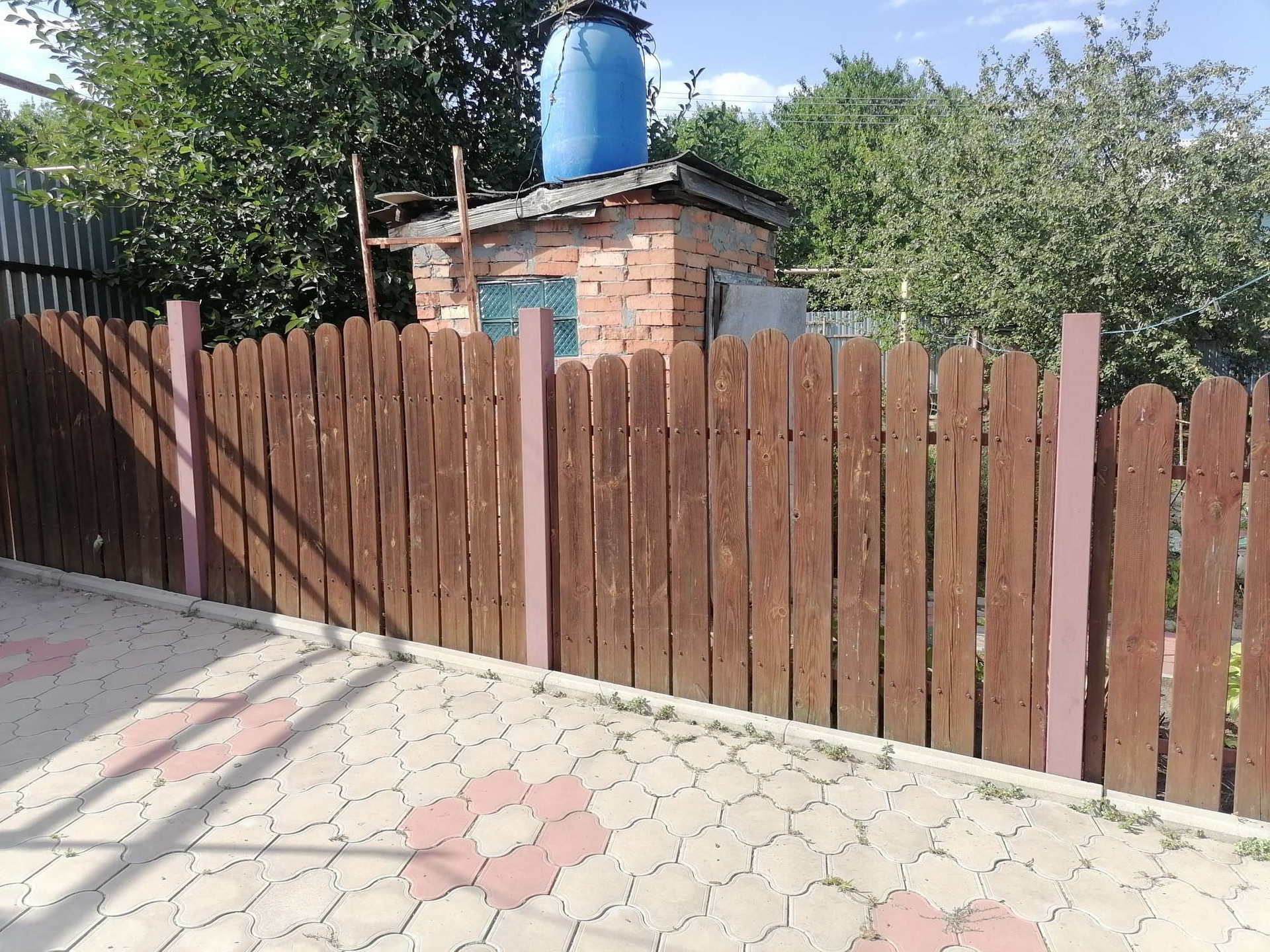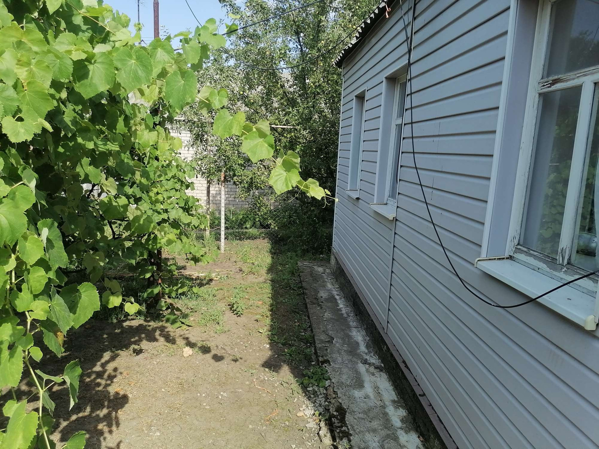 Земельный  участок 5 соток (земля в собственности, межевание проведено), ширина фасада 20  метров. Хозпостройки, летняя  кухня с газом, во дворе тротуарная плитка.