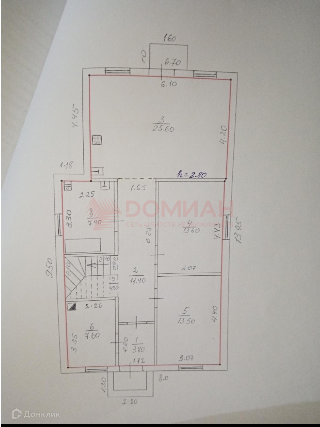 Высота потолков 2.8 м